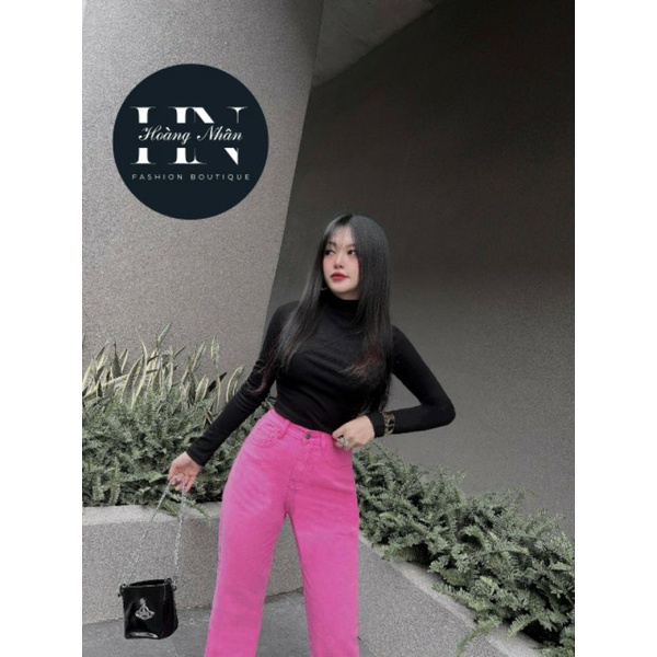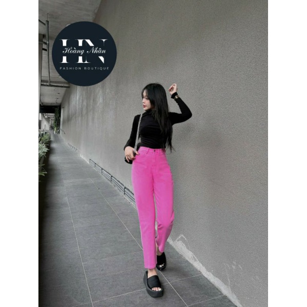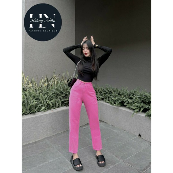 Quần Jeans kaki nữ cao cấp ống đứng màu hồng nổi bật