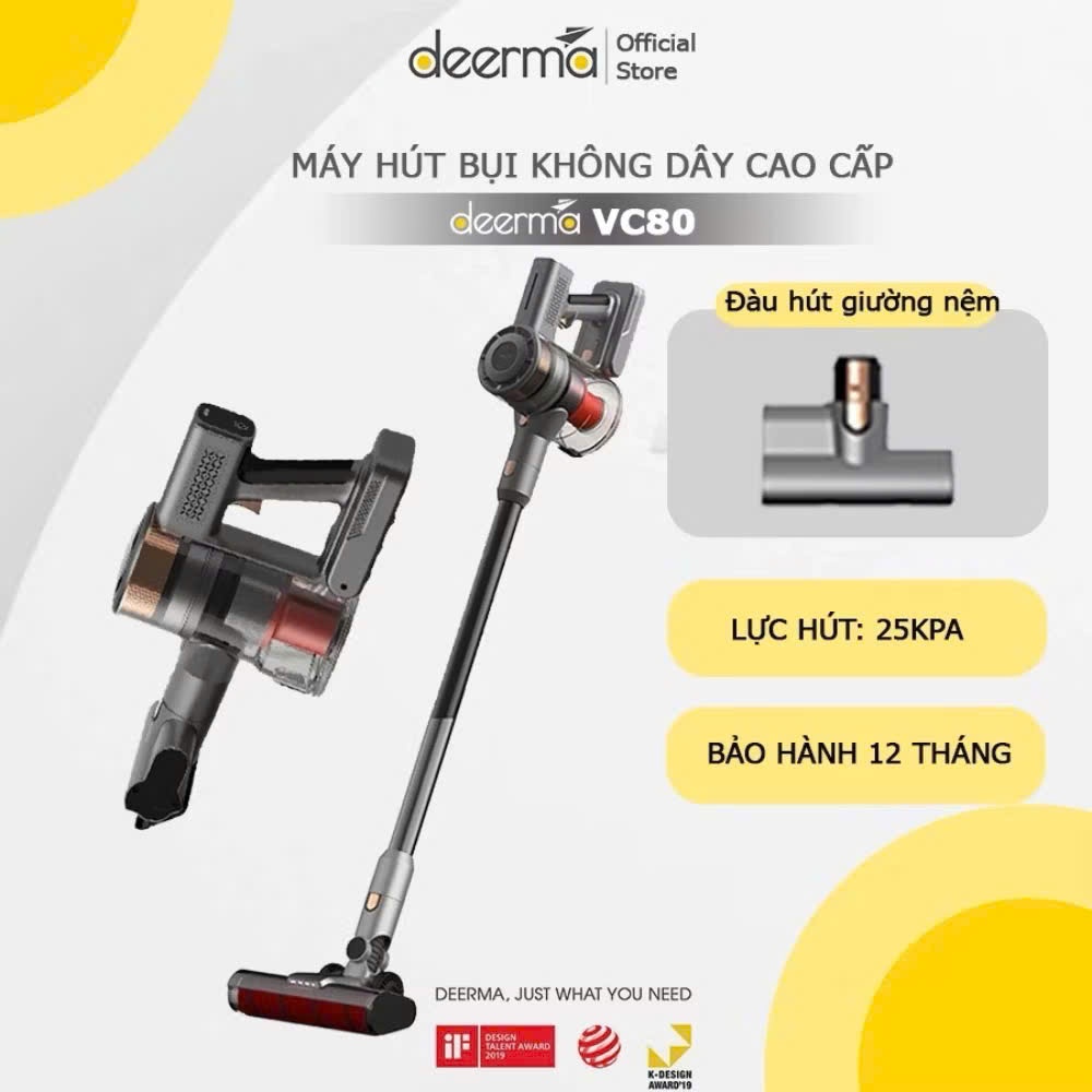 Máy hút bụi không dây Deerma VC80 lực hút mạnh, Máy hút bụi cầm tay có đầu hút nệm, màn hình LED, pin tháo rời