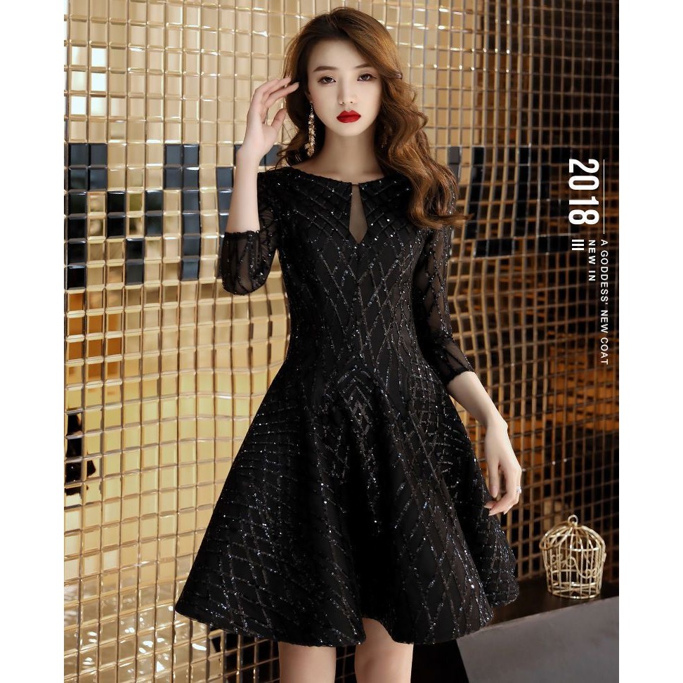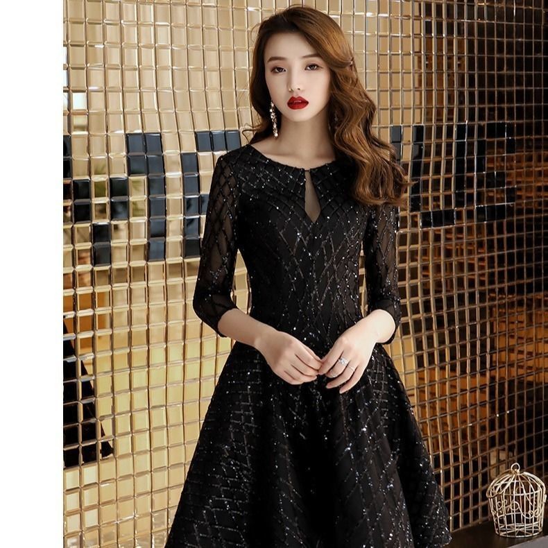 Váy dạ hội đen mới cho phụ nữ, thích hợp cho tiệc chiêu đãi, tiệc cocktail, lễ kỷ niệm sinh nhật