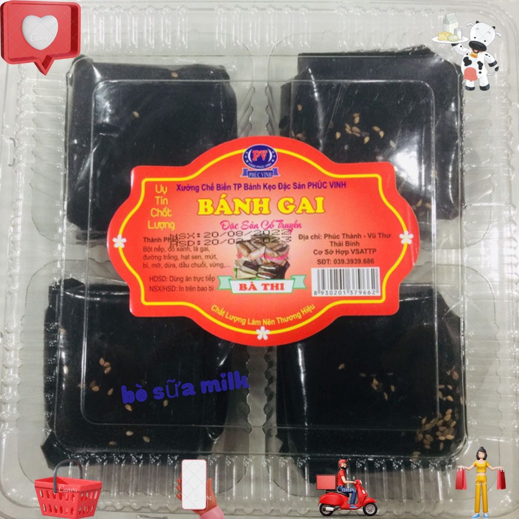 Bánh gai bà Thi - Đặc sản quê lúa Thái Bình, hộp 8 bánh