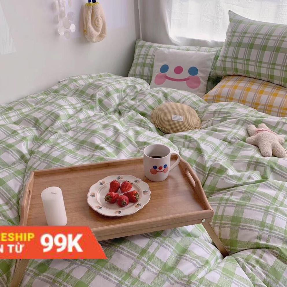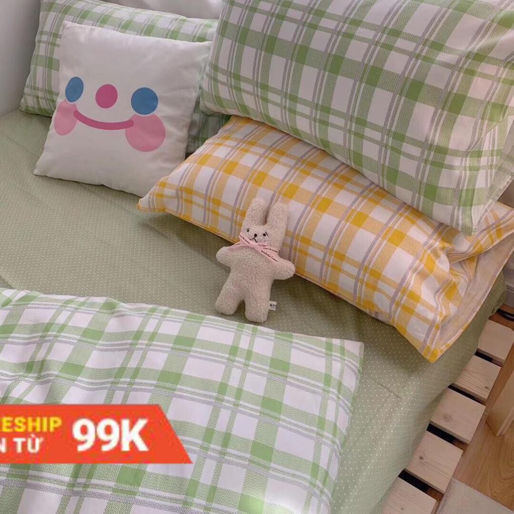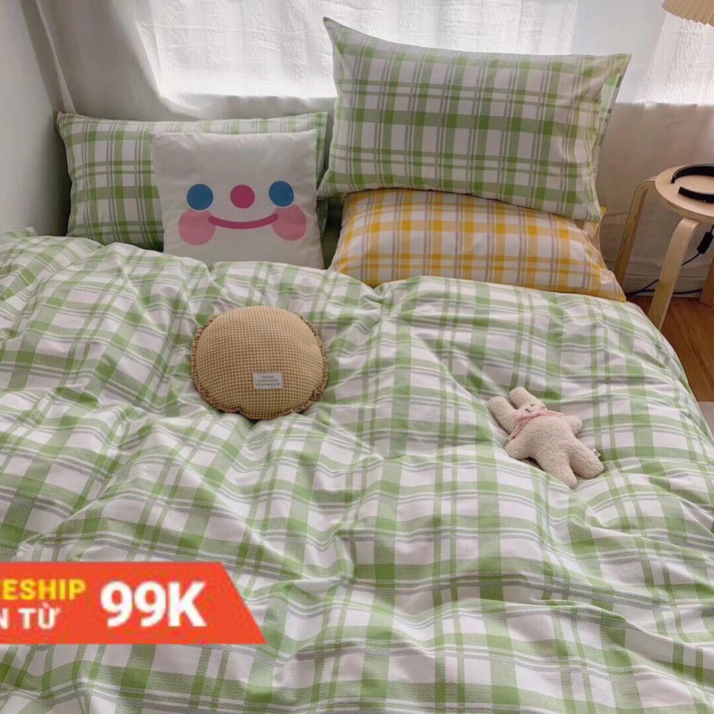 Bộ Chăn Ga Gối Cotton Poly Kẻ Xanh Vintage ..