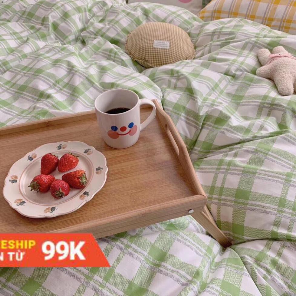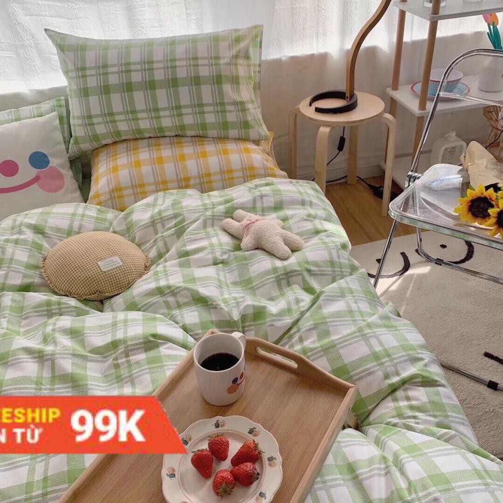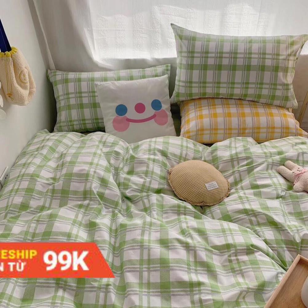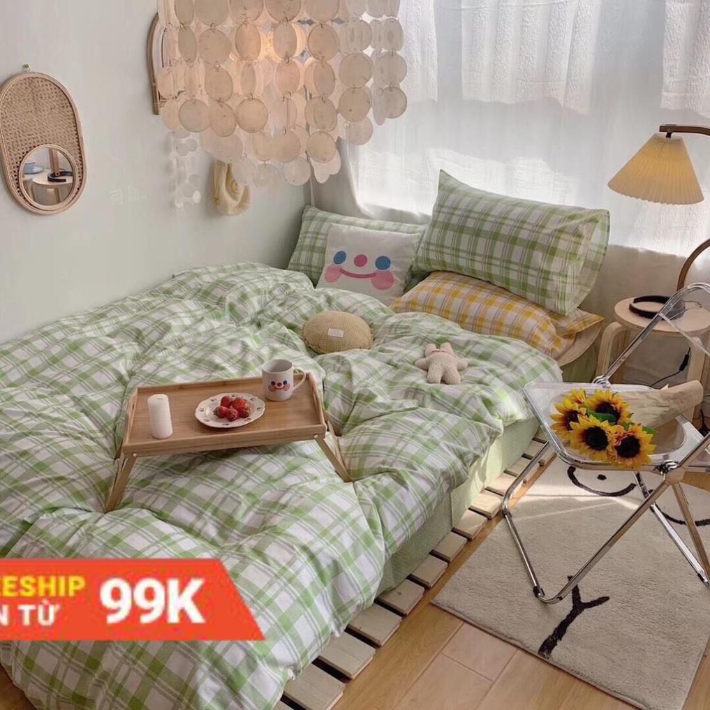 Bộ Chăn Ga Gối Cotton Poly Kẻ Xanh Vintage ..