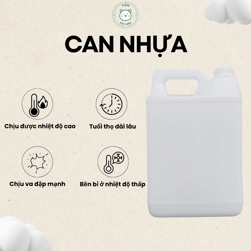 Can Nhựa HDPE 5L,2L,1L Màu Trắng Đục, Nắp Chống Trơn Trượt, Seal Mút Chống Tràn