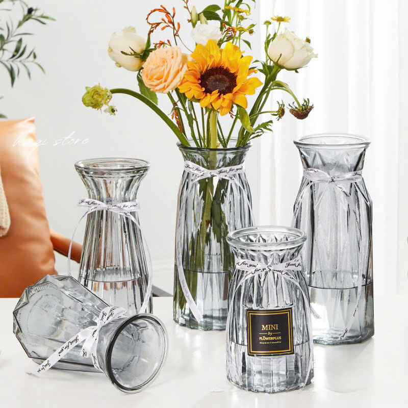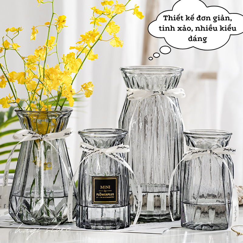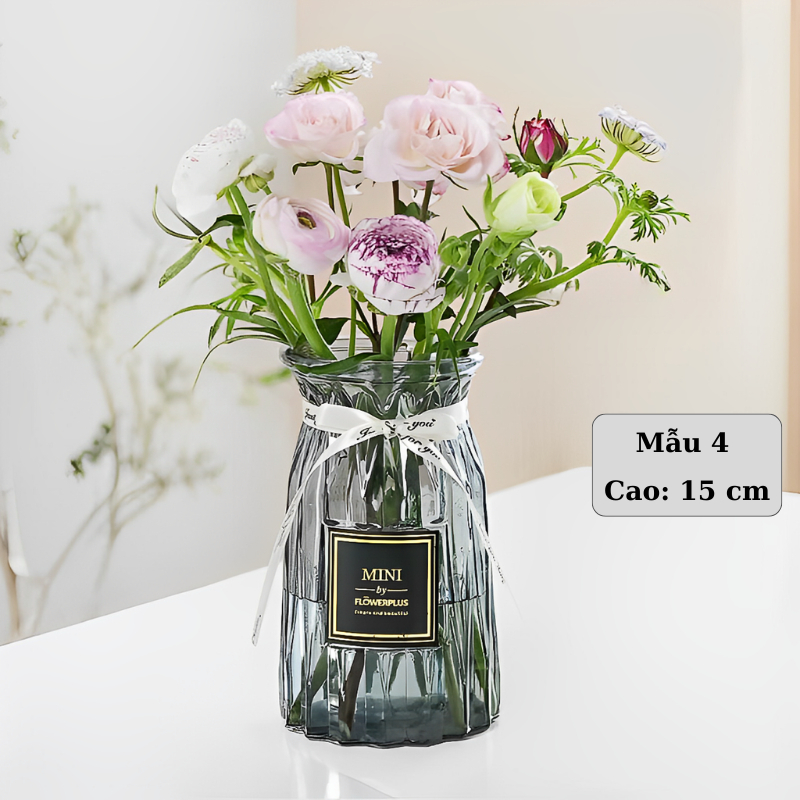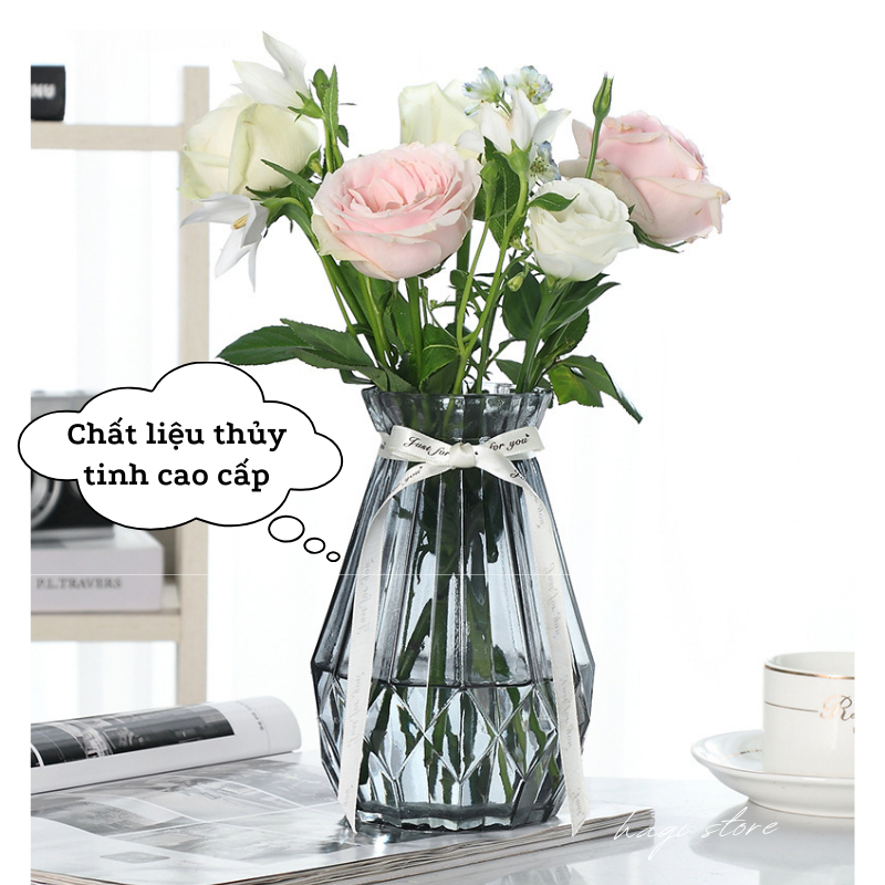 Bình hoa thủy tinh vân sọc phong cách cổ điển, bình cắm hoa vintage trang trí nhà cửa