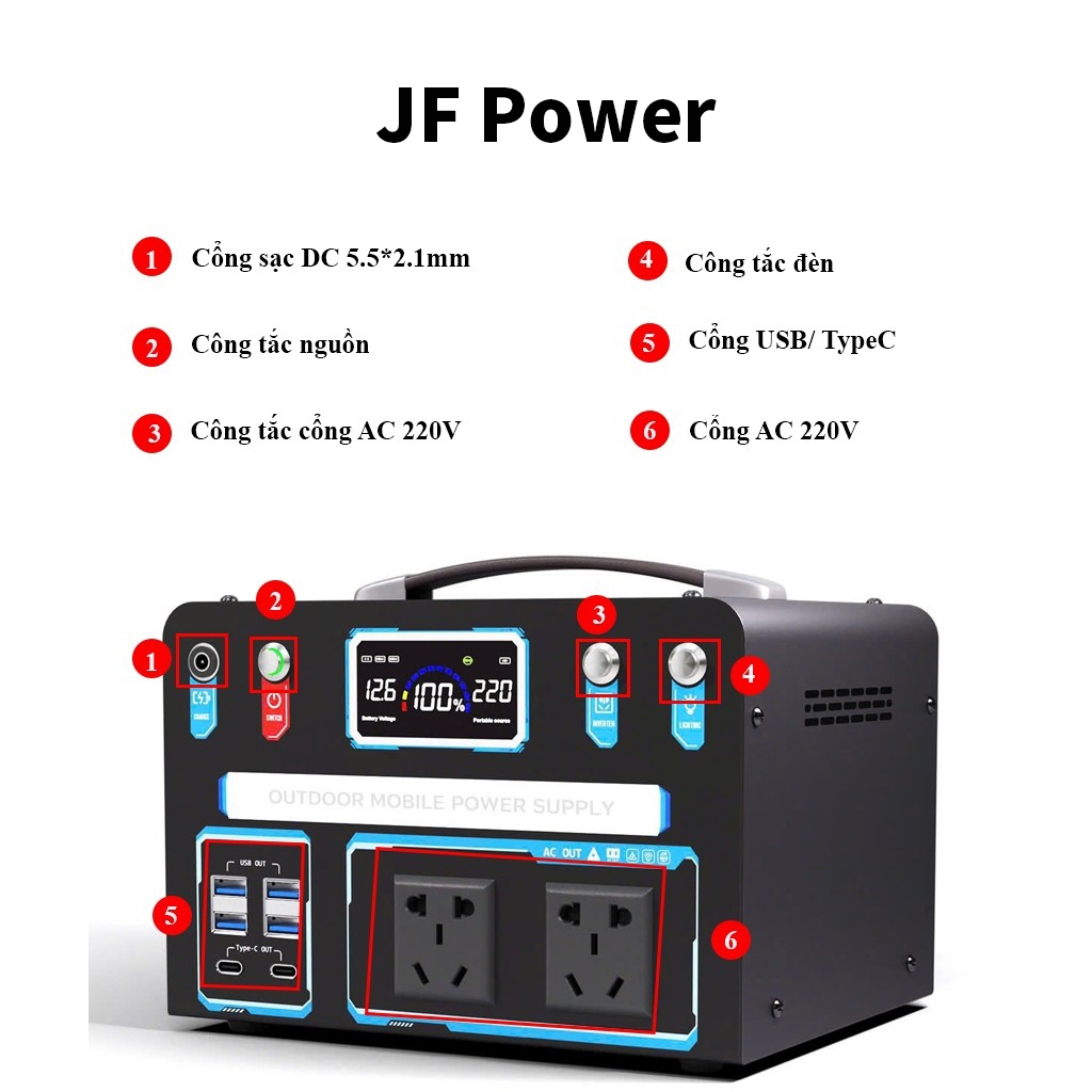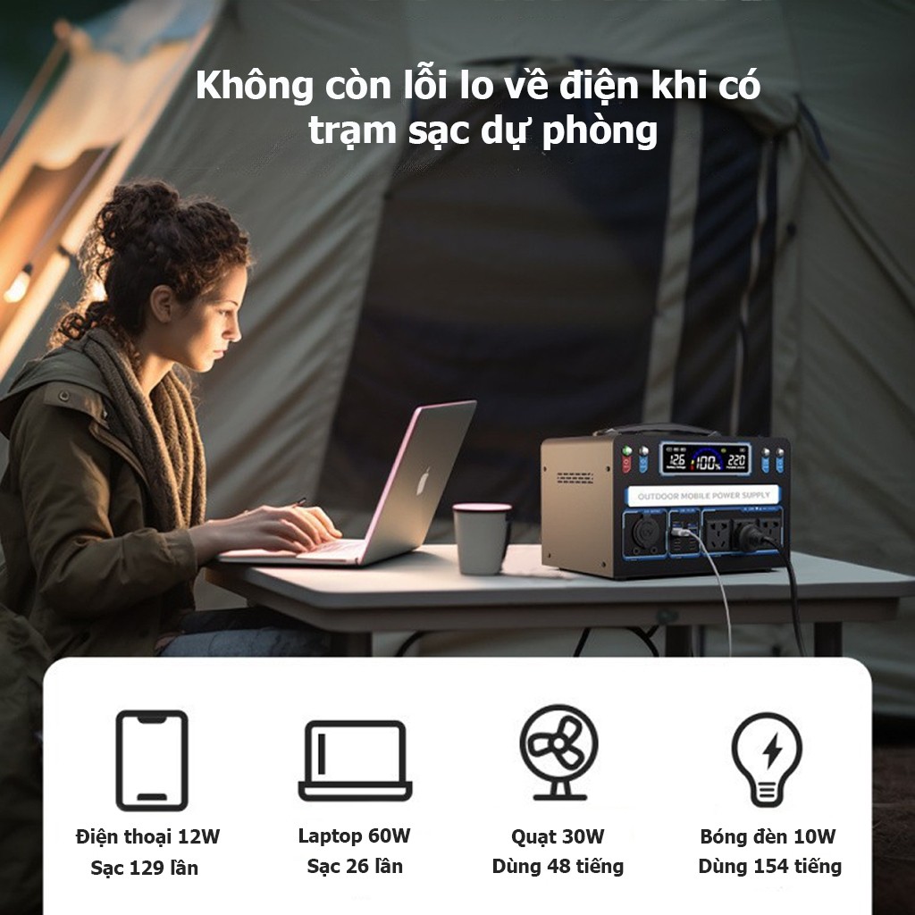 Trạm sạc dự phòng di động công suất 500W điện 220V dung lượng 80.000mAh dự phòng mất điện, du lịch camping