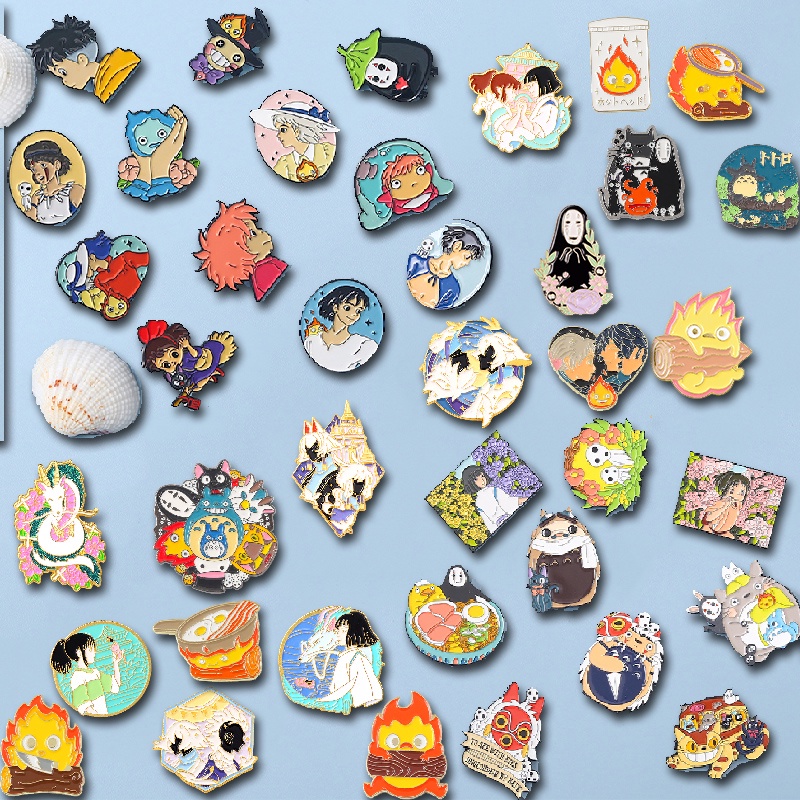Ngọn Lửa Tinh Men Chân Mononoke Chihiro Haku Totoro Than Bóng Thổ Cẩm Ve Áo Huy Hiệu Phim Hoạt Hình Trang Sức Quà Tặng
