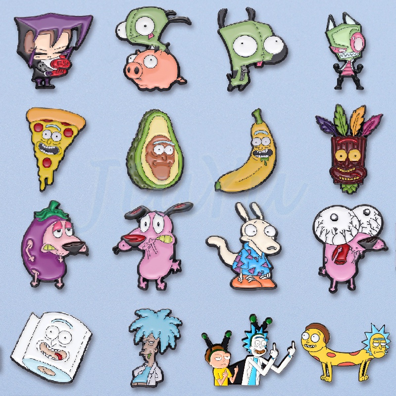 [Amazing.pin Trâm cài] Phim hoạt hình Anime Rick và Morty Men Pin Trâm cài Kẻ xâm lược dễ thương Zim Pig Trâm cài áo Huy hiệu Ba lô Trang sức Quà tặng cho trẻ em