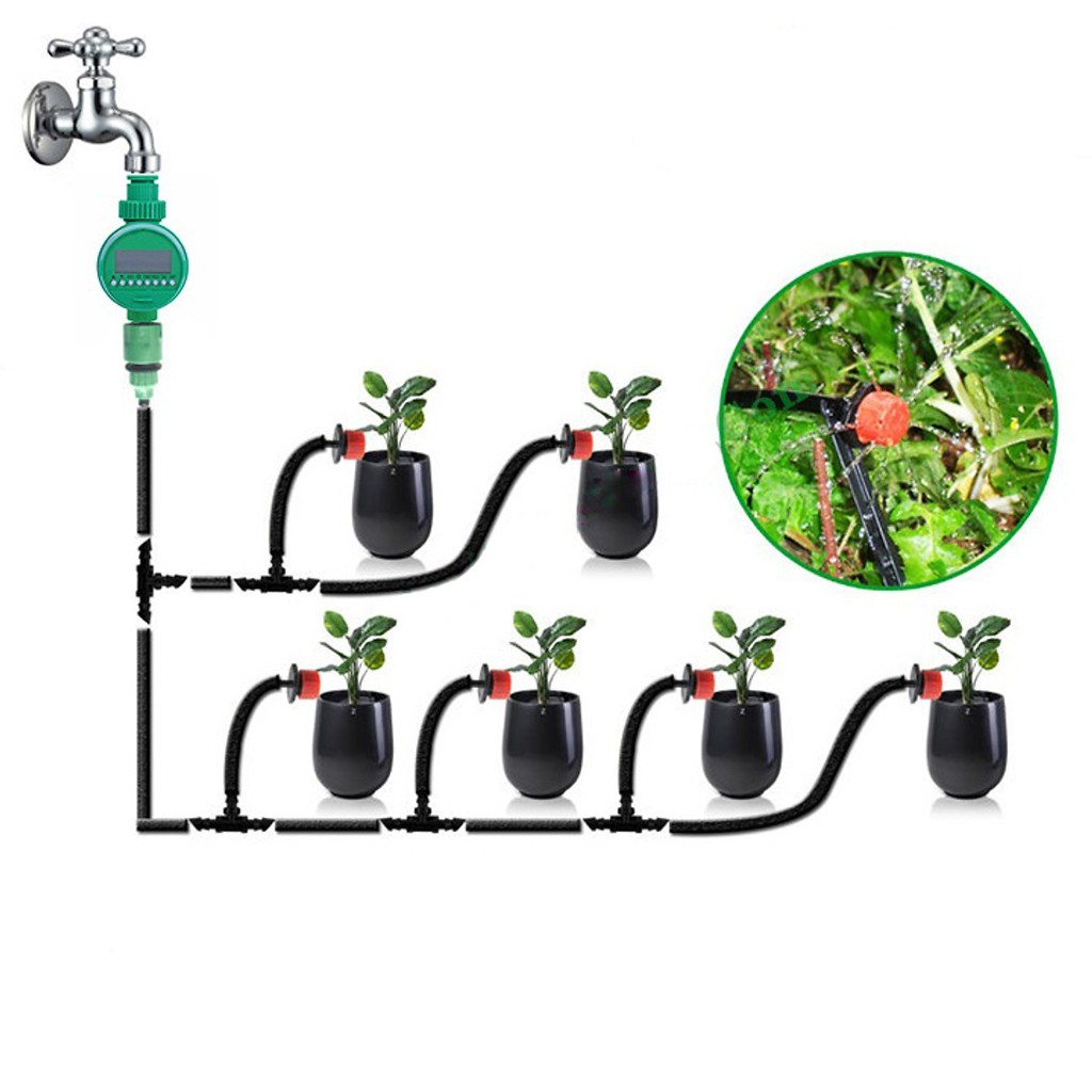BỘ TƯỚI NHỎ GIỌT TỰ ĐỘNG CHO BAN CÔNG, SÂN VƯỜN KÈM VAN NƯỚC HẸN GIỜ