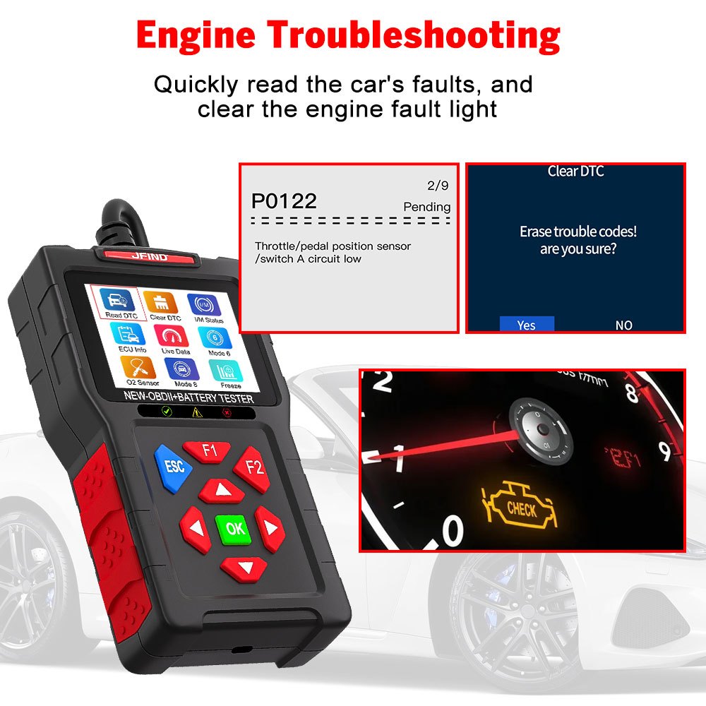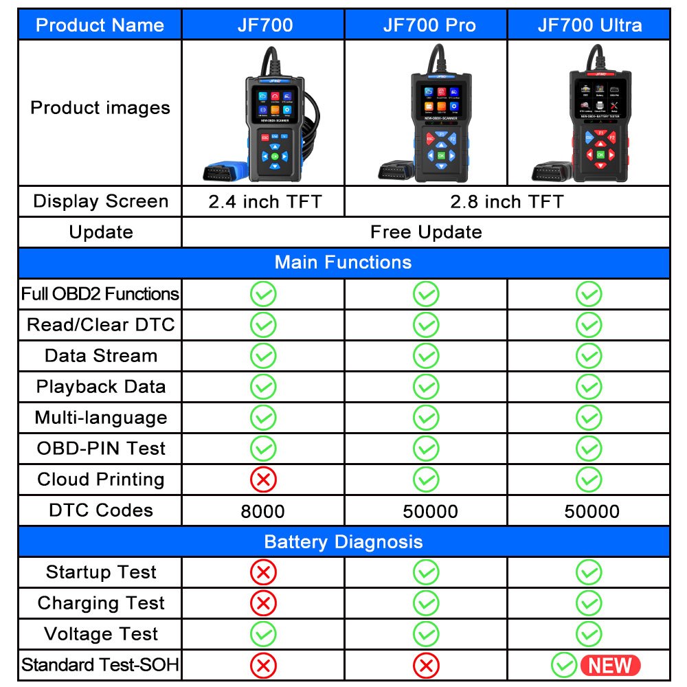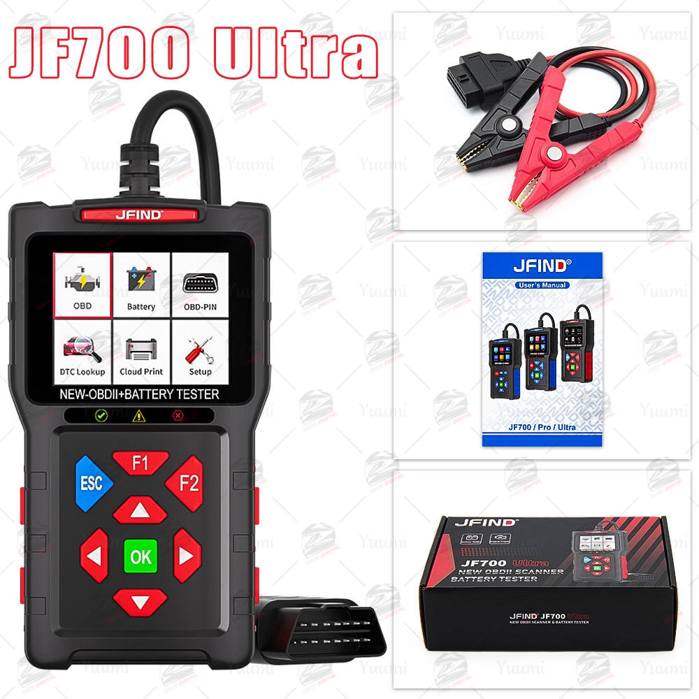 Tiếng Việt JF700 Ultra OBD2Máy quét + Máy kiểm tra ắc quy cho ô tô & xe máy OBDII Công cụ đọc mã lỗi để kiểm tra động cơ Kiểm tra ắc quy SOH 12V 24V
