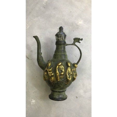 ấm rượu bằng đồng hình bát tiên màu giả cổ