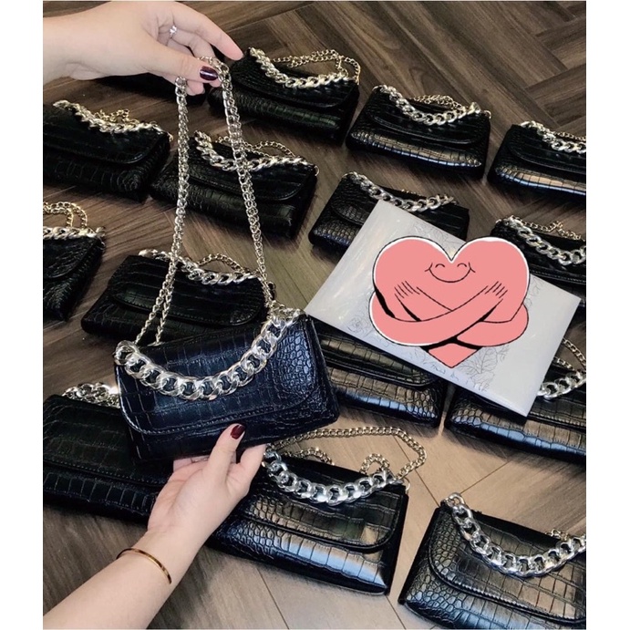 Túi xách tay, đeo chéo, kẹp nách màu đen sần sang chảnh, xịn mịn hàng Singapore