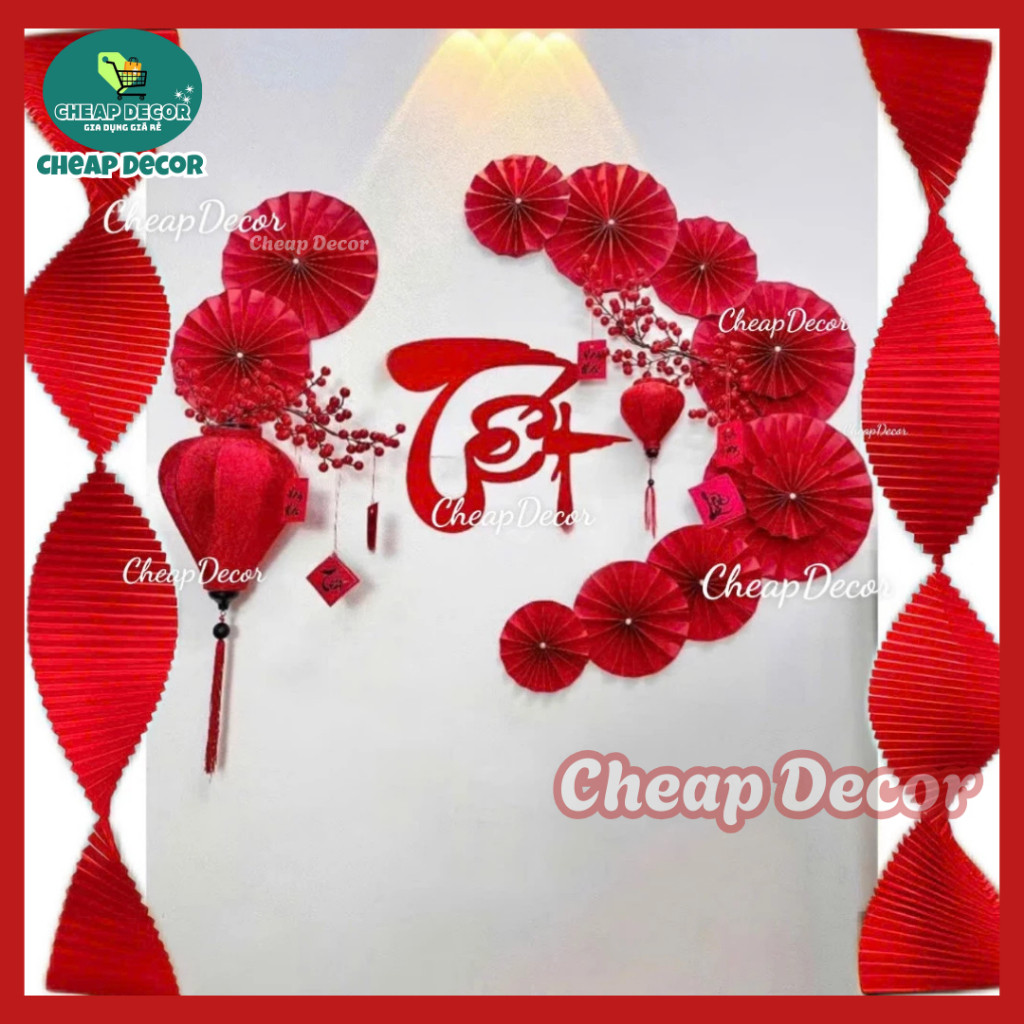 (HÀNG ĐẸP) Set decor Tết Tài Lộc với đèn lồng gấm Hội An siêu đẹp, trang trí Tết 2026