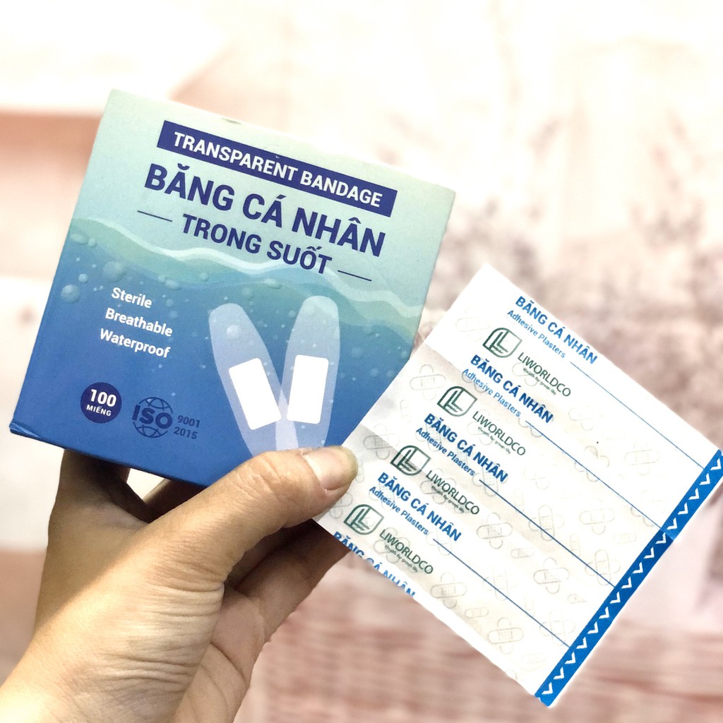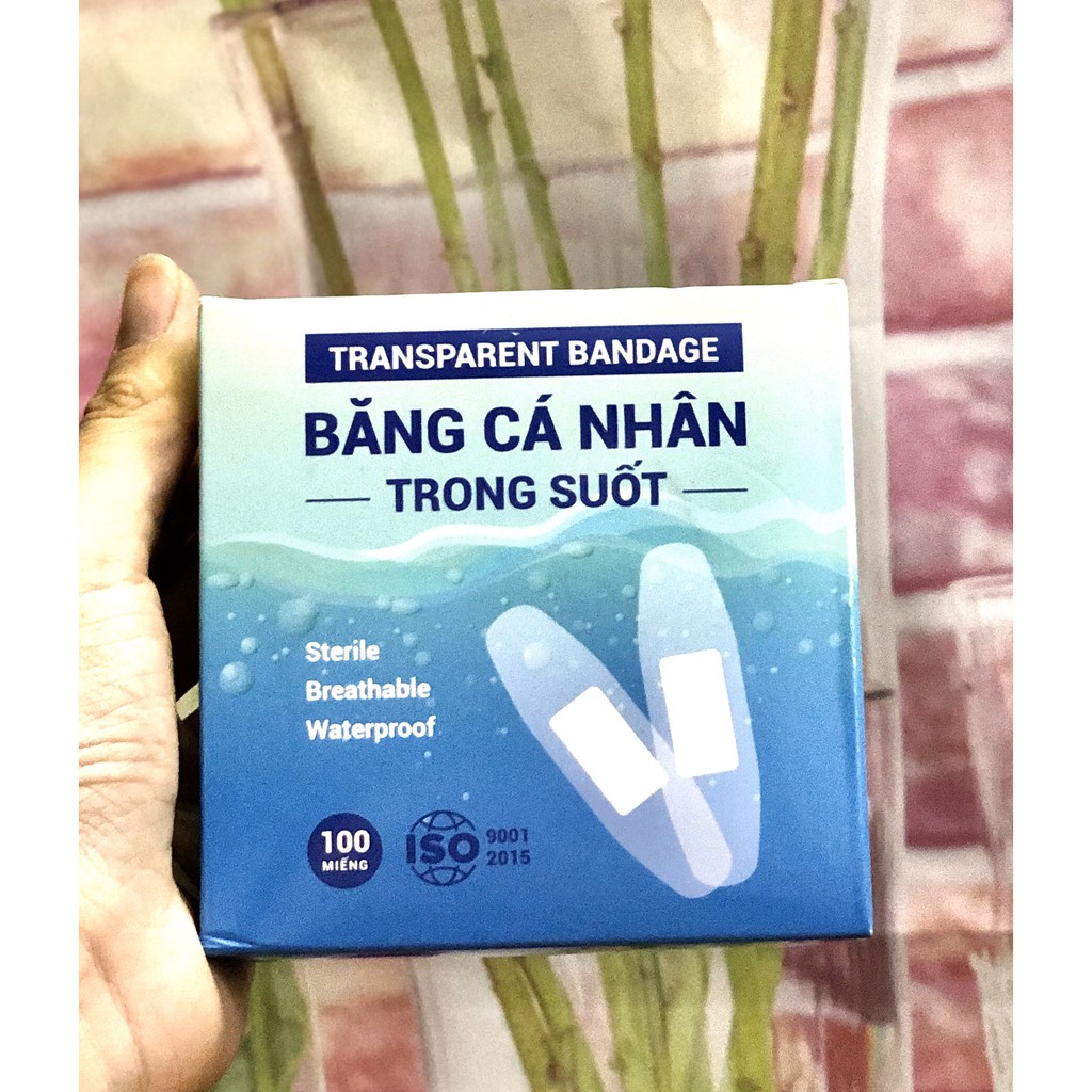 Băng cá nhân chăm sóc vết thương hộp 100 cái màu trong suốtm - Băng cá nhân trong suốt Hộp 100 miếng