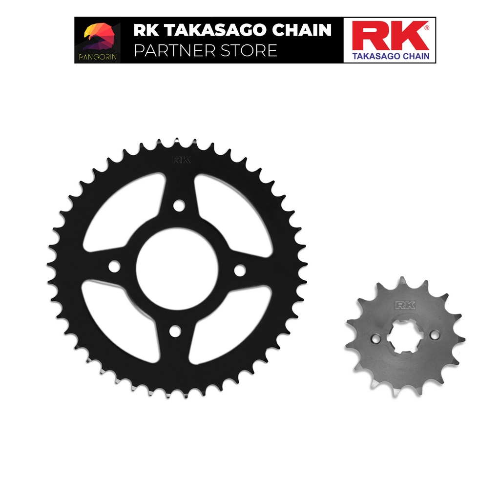 Nhông Dĩa RK Takasago cho xe phân khối lớn Kawasaki W175 SE, chất liệu: Thép mạ màu đen, độ dày Nhông Dĩa: 428