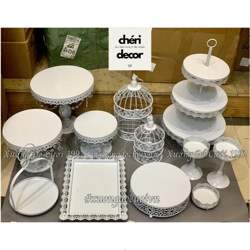 Bộ Khay Kệ Bánh 12 Món Màu Trắng Trang Trí Tiệc Bánh, Sinh Nhật, Bày Buffet, Fingerfood, Teabreak