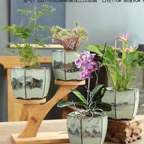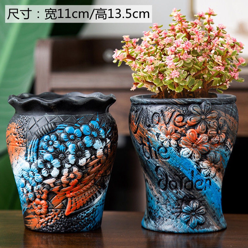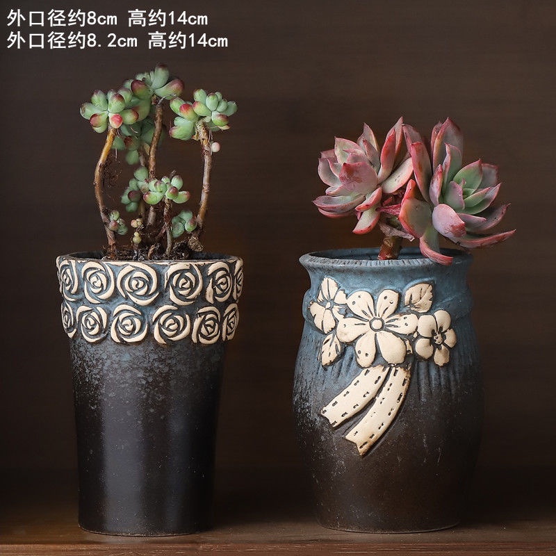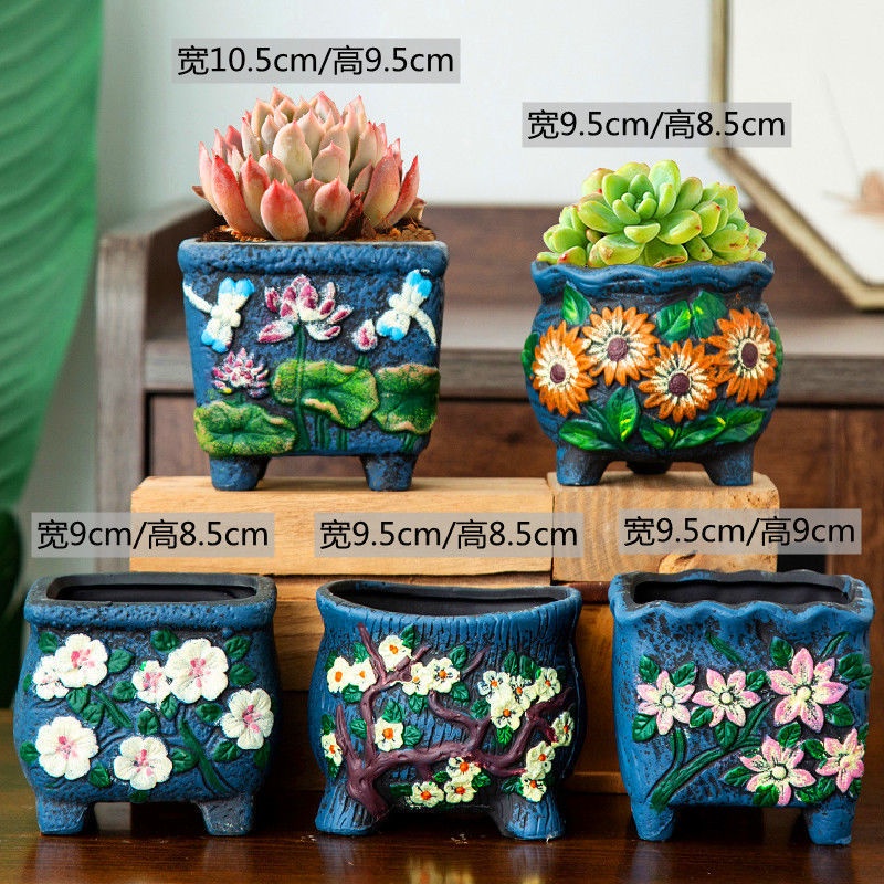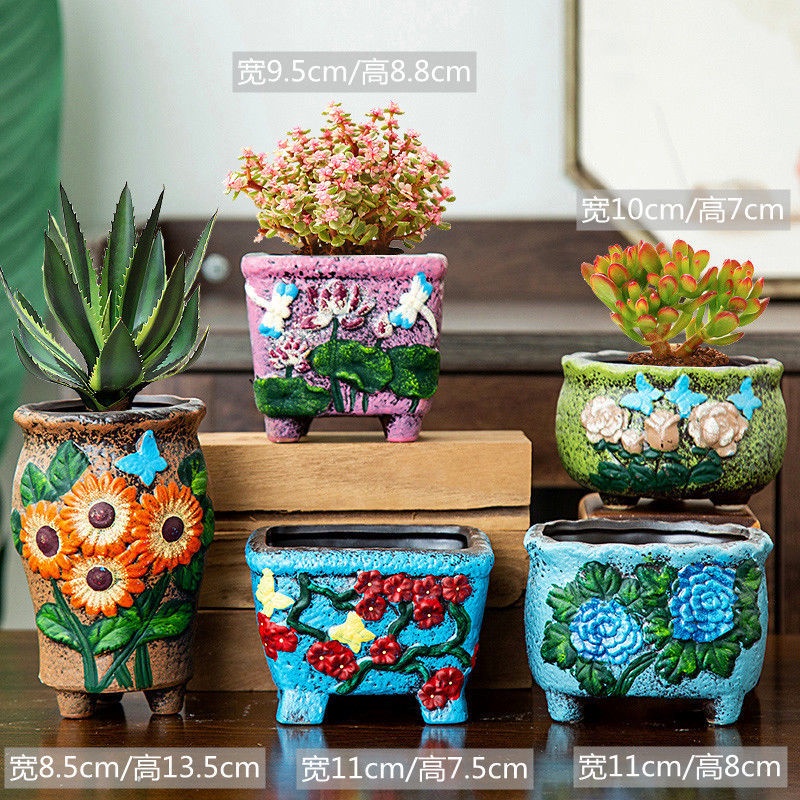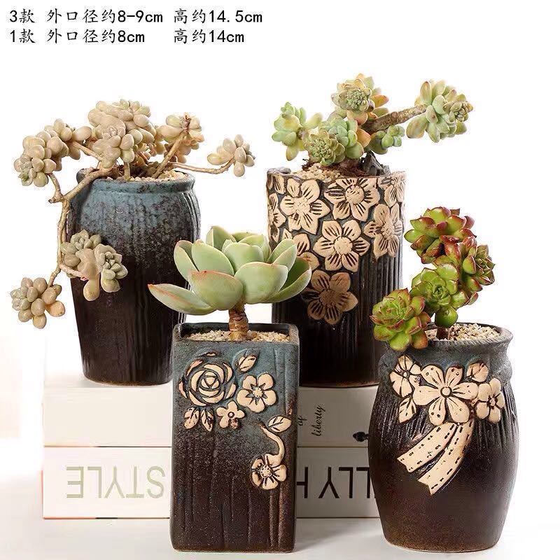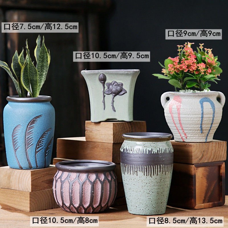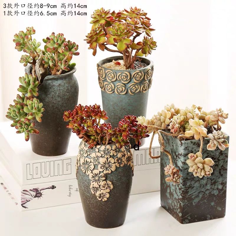 Chậu hoa mọng nước cọc cũ đồ gốm sứ Chậu hoa Nhỏ Trồng Cây Bậc Thầy màu xanh lá cây hộp đựng cây mọng nước trang trí