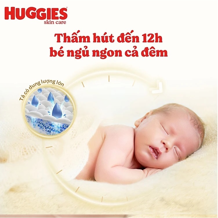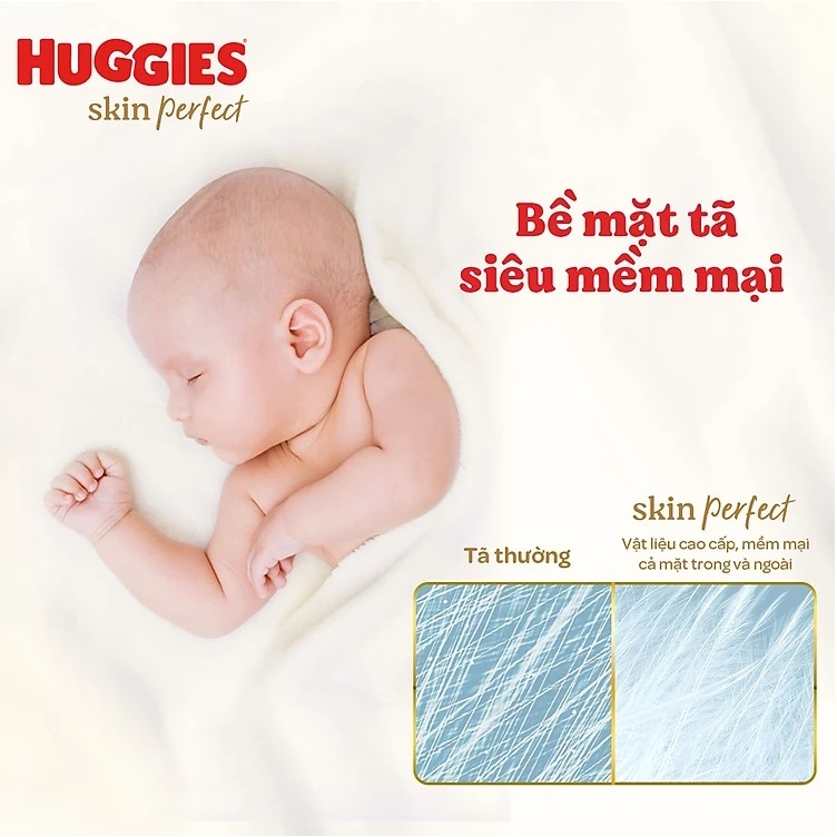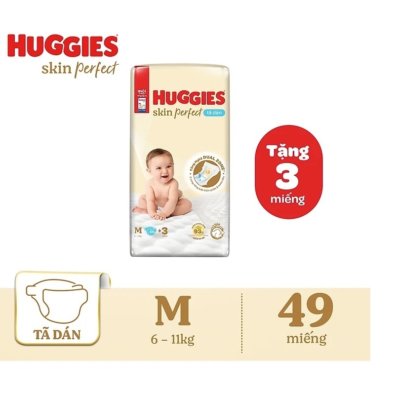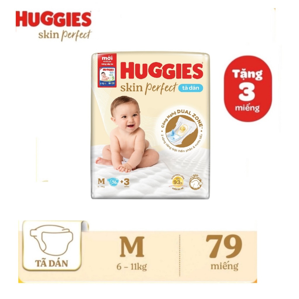 Tã dán sơ sinh Huggies Skin Perfect M 76+3 miếng 6-11kg với 2 vùng thấm giảm kích ứng da