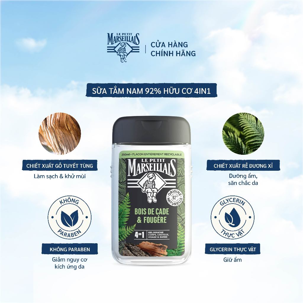 Sữa Tắm 4 in 1 Nam 92% Thiên Nhiên Le Petit Marseillais Nhiều Mùi Hương 250ml