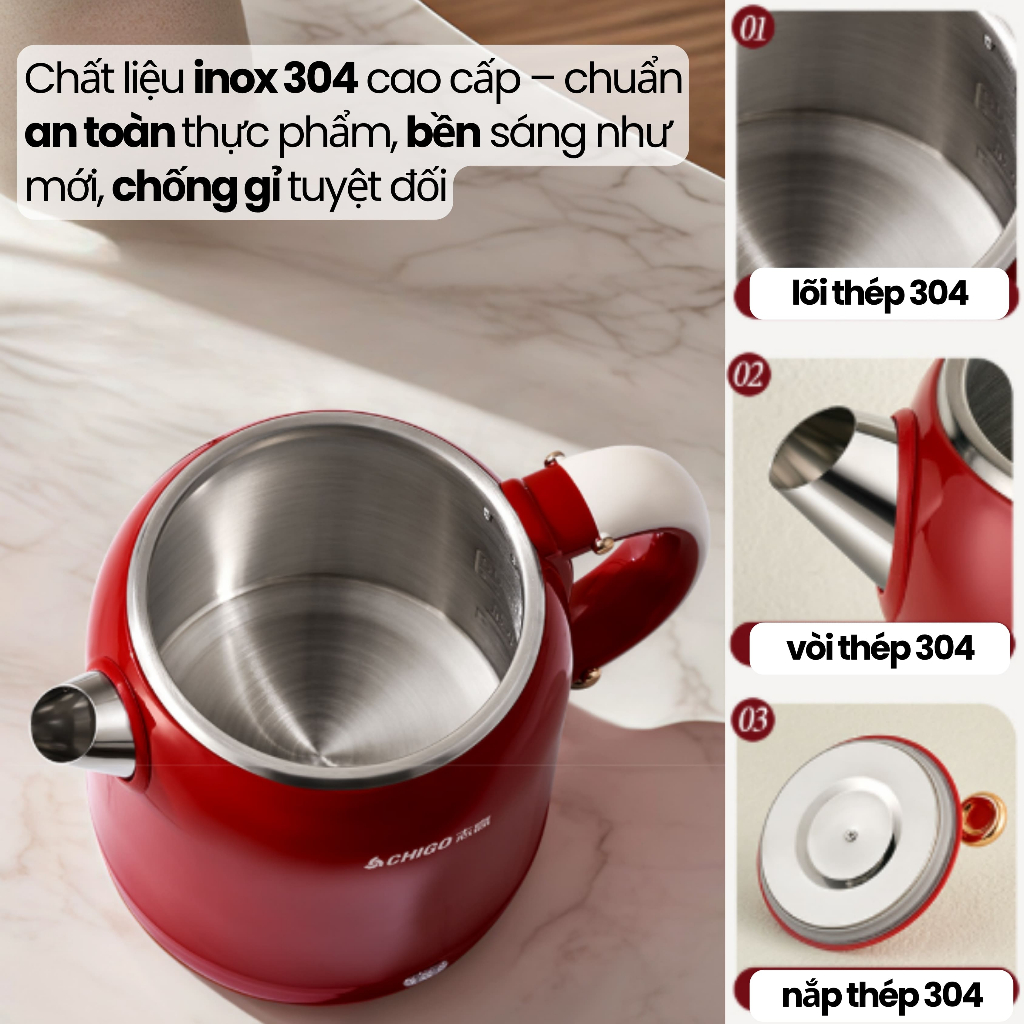 Ấm đun siêu tốc 1L sôi nhanh 3 phút, lõi 3 lớp inox 304 giữ nhiệt không gỉ, tự ngắt an toàn,bình đun nước tiết kiệm điện