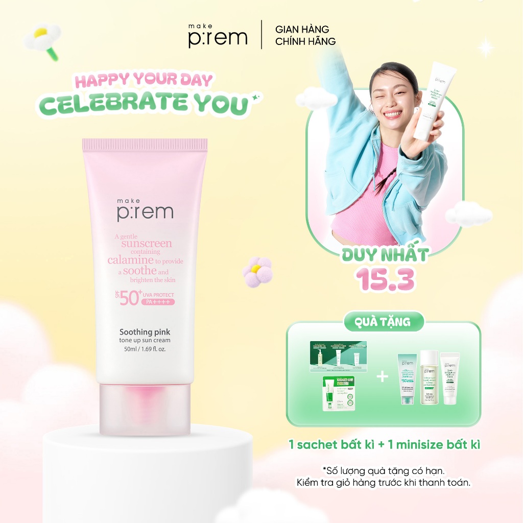 Kem Chống Nắng Vật Lý Cải Tiến Mới Soothing Pink Tone Up Sun Cream Make P:rem Nâng Tone Hồng Rạng Rỡ SPF 50+ PA++++ 50ml