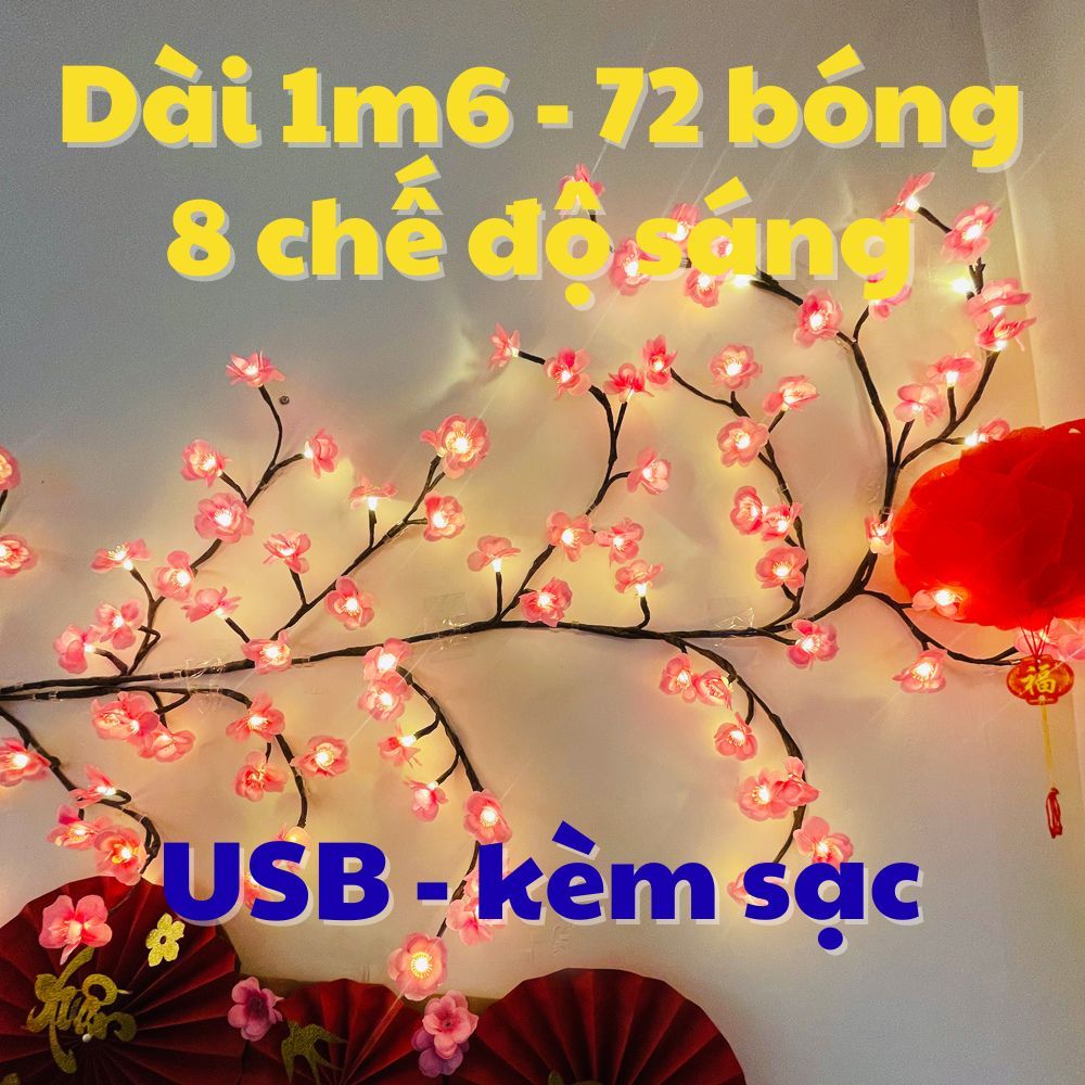 Đèn Led Cành Hoa Đào Trang Trí Nhà Dán Tường 1 Mét 6 72 Bông 8 Chế Độ Sáng