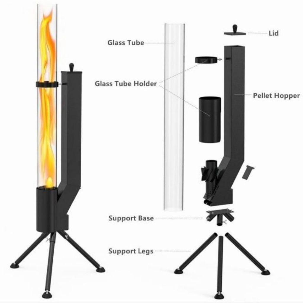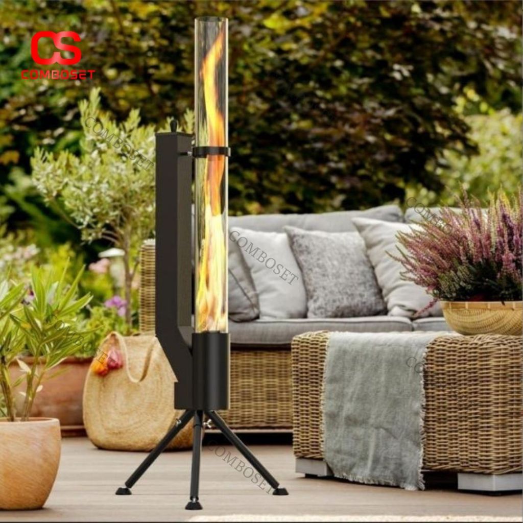 Lò Sưởi Ngoài Trời Dáng Trụ Kính Cao Chân Đứng Kim Loại