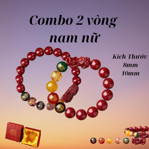 Combo 2 chiếc vòng chu sa phong thuỷ may mắn 8 và 10mm, vòng tỳ hưu ngũ lộ thần tài ,vòng tay nam nữ