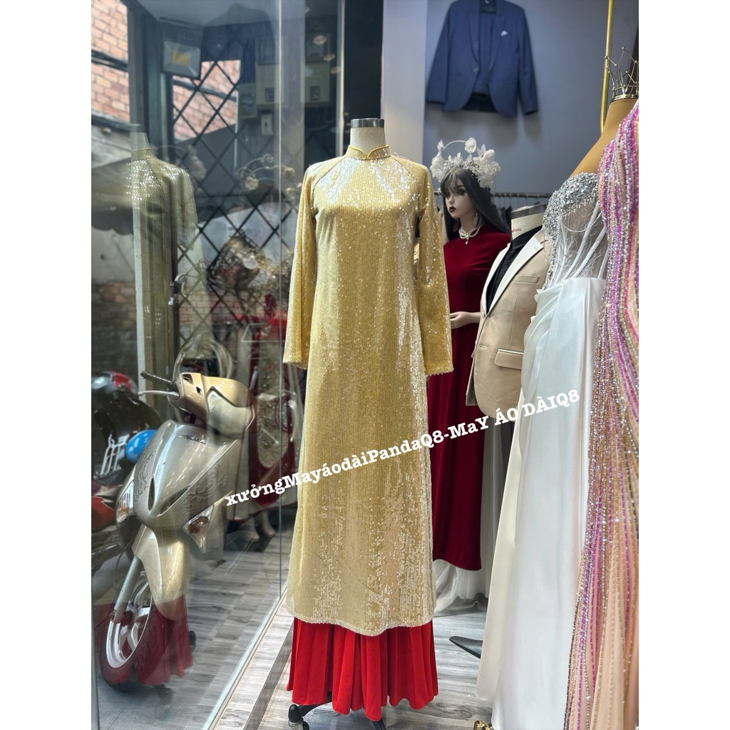 (HOẢ TỐC 2h)ÁO DÀI KIM SA SEQUIN VÀNG MAY MẮN ĐẦU NĂM LỄ TẾT CHỤP HÌNH KHAI TRƯƠNG SÁNG RỰC NĂM MỚI