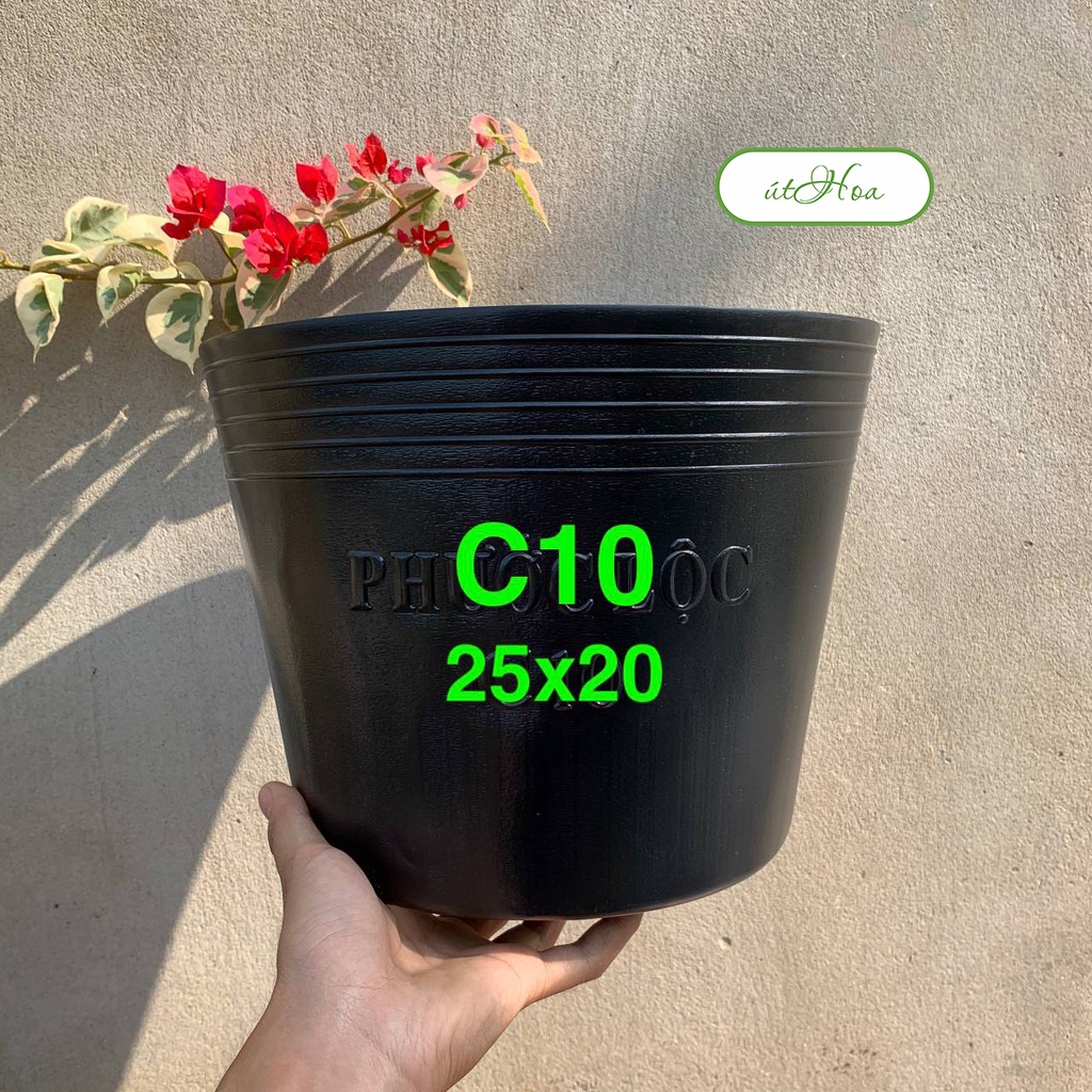 Combo 20 cái Chậu nhựa đen C10 (25x20 cm) trồng cây siêu dày, siêu bền
