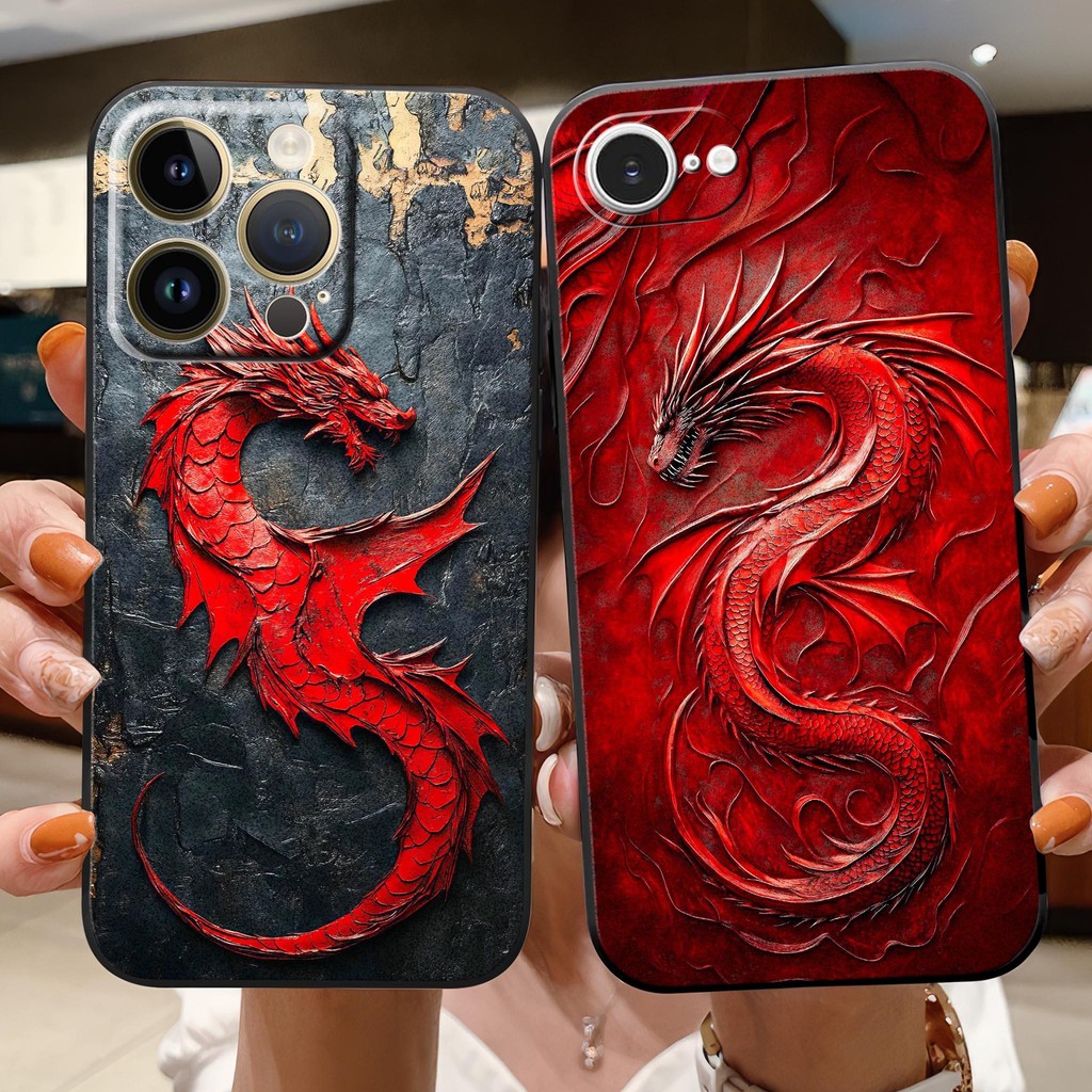 Ốp Dẻo Rồng đỏ vẽ trên tường ngầu dành cho iPhone 17 16 15 14 13 12 11 8 7 6 6s 6p 7p 8p 6g 7g 8g Pro Max XR XS xsmax Pl
