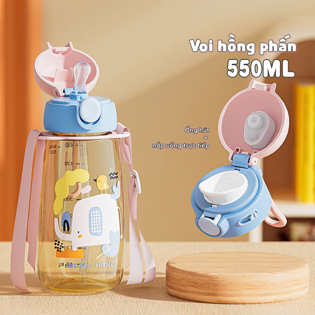 Bình Nước Cho Bé NRMEI 480ml Nhựa PPSU Cao Cấp - Thiết Kế 2 Đầu Nắp Đa Năng, Có Dây Đeo [Tặng Sticker & Cọ Vệ Sinh]