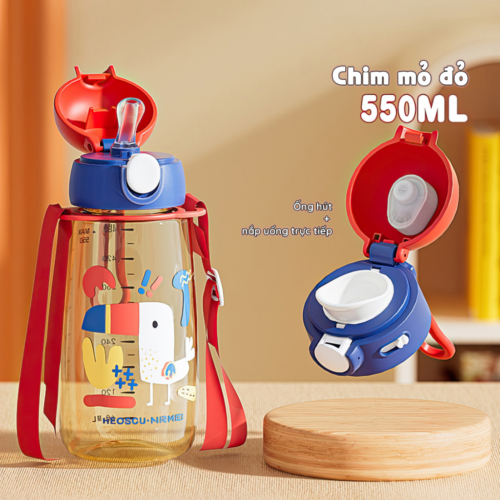 NRMEI | Bình Nước Cho Bé, 480ml Nhựa PPSU Cao Cấp, Không BPA [Tặng Sticker, Cọ Vệ Sinh Bình]