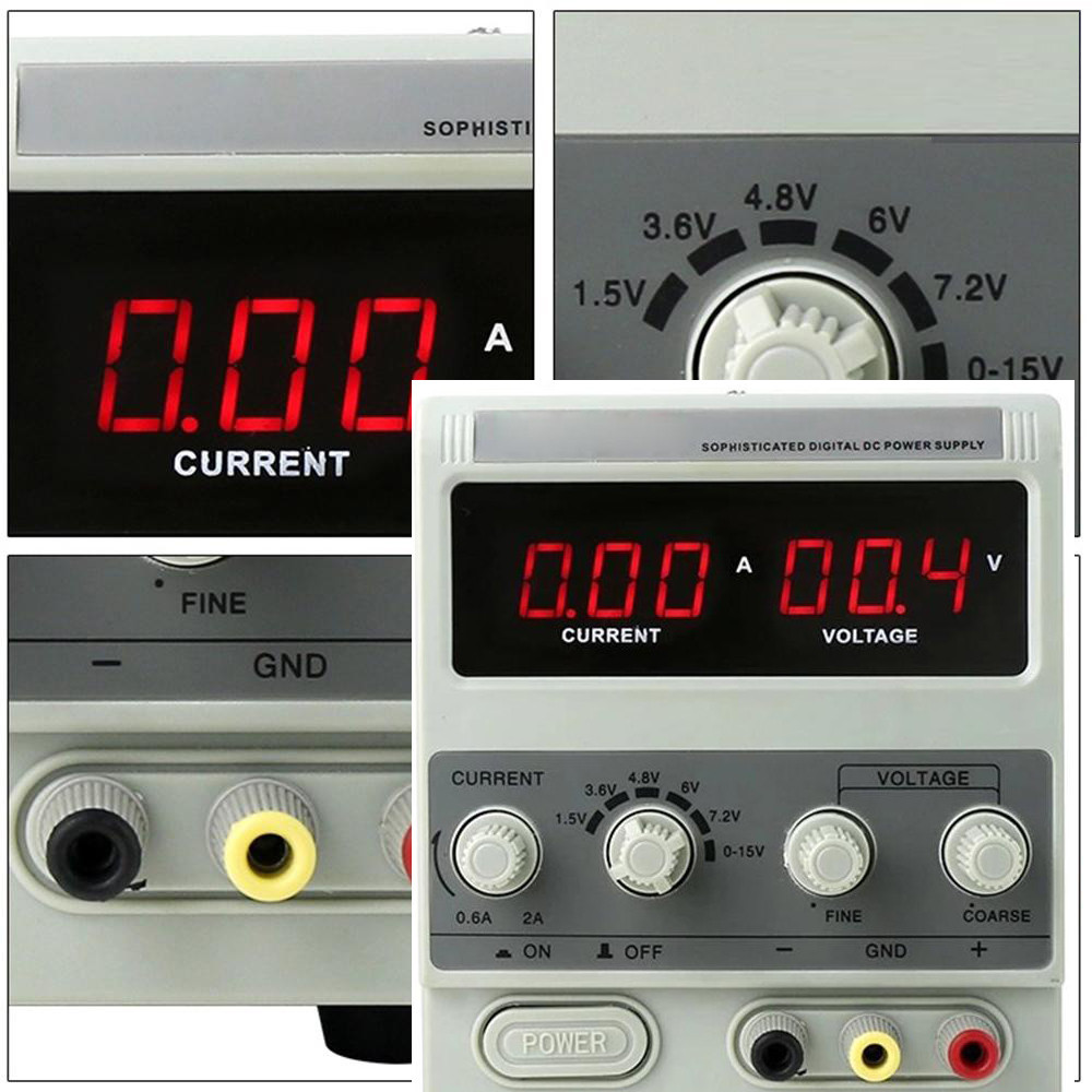 Máy cấp nguồn DC 15V/2A Thiết kế màn hình LED 1502DD kép hiển thị điện áp đầu ra và dòng hiện hành