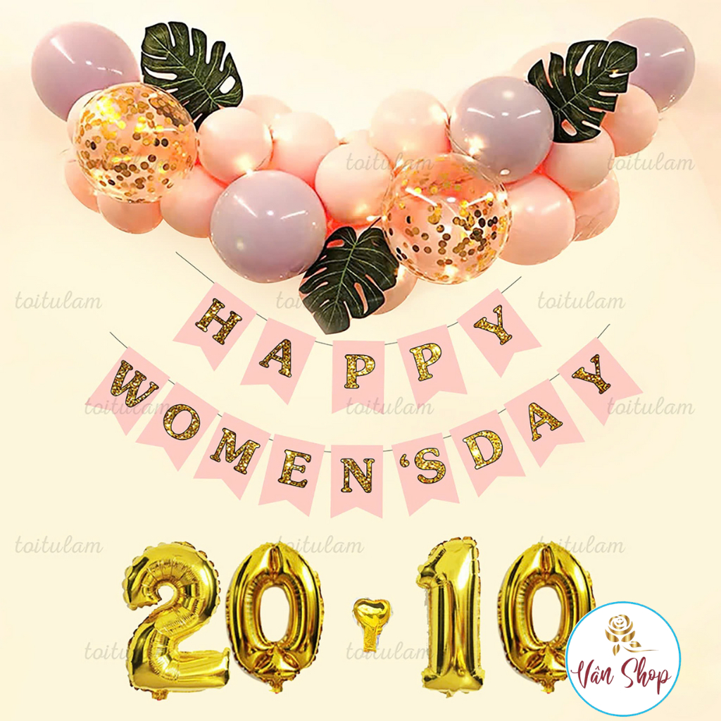 Set Bong Bóng Trang Trí 8/3 HAPPY WOMEN DAY 20/10 Ngày Phụ Nữ Việt Nam
