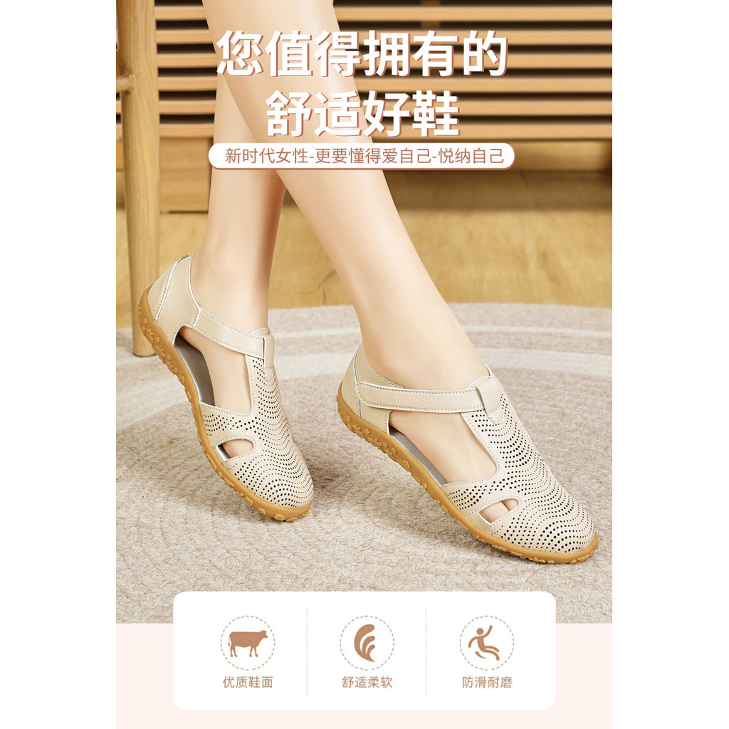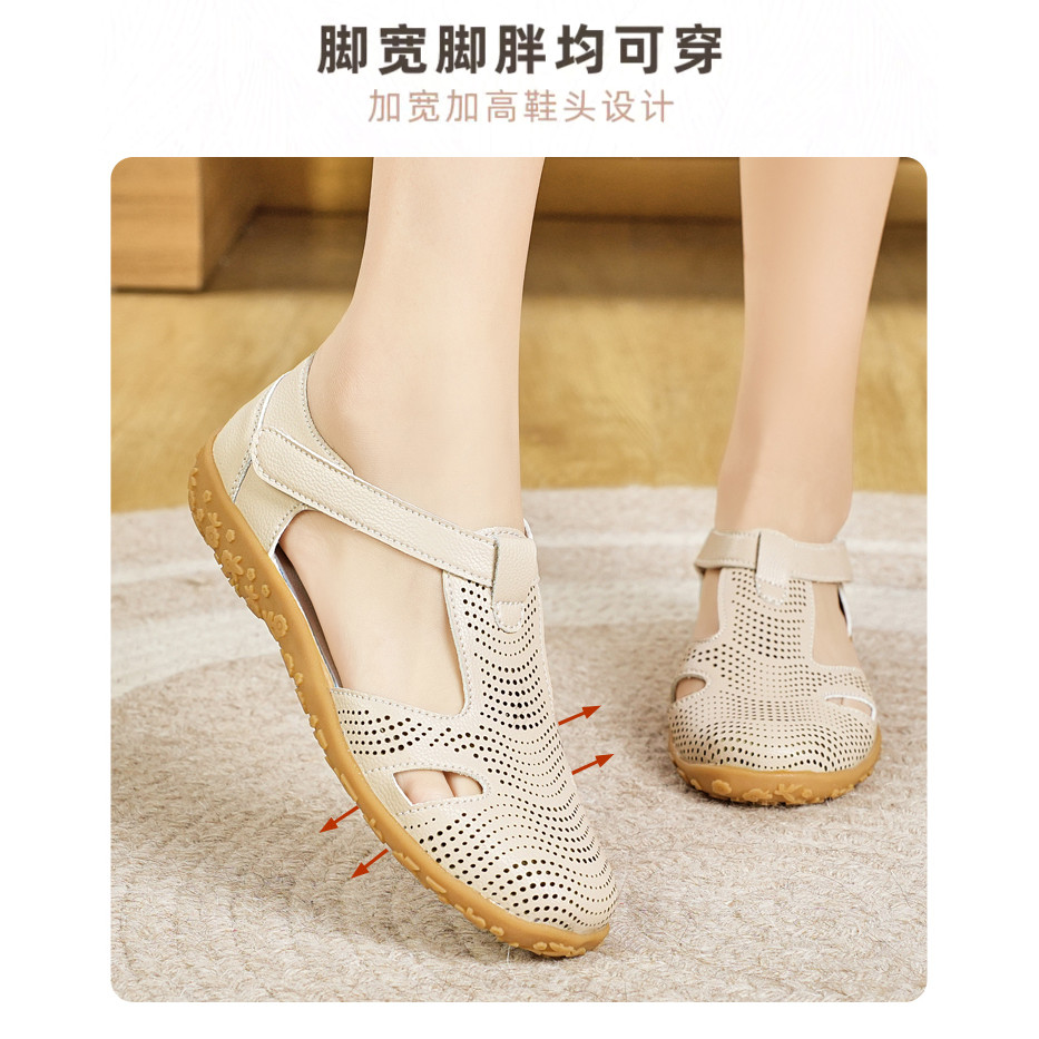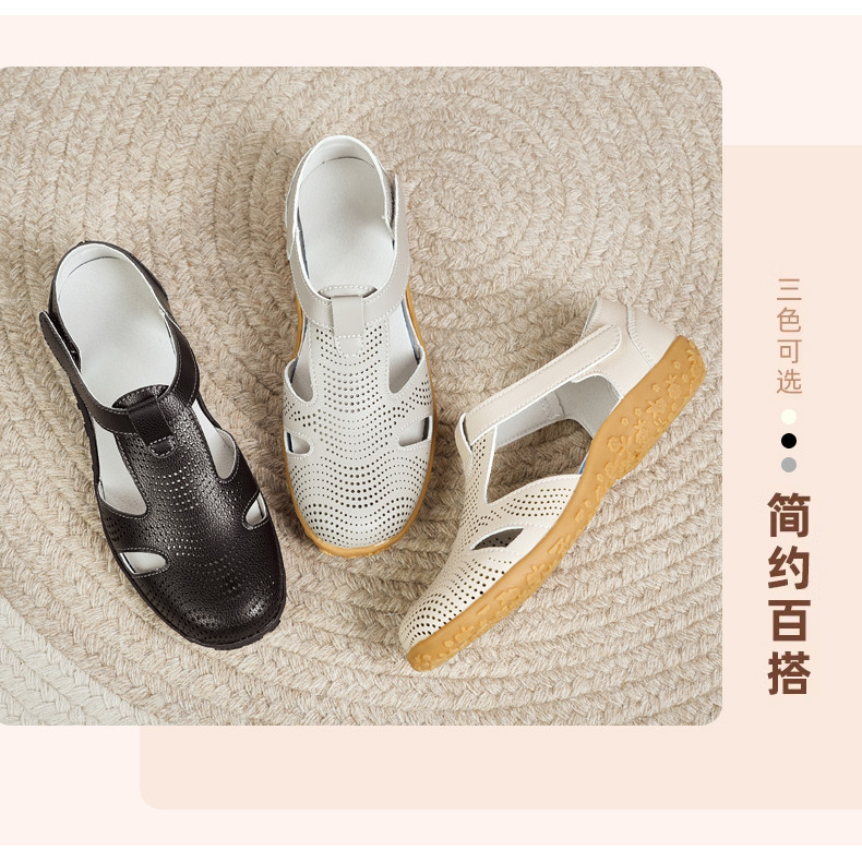 Thời Trang Phiên Bản Hàn Quốc Giày Nữ Size Lớn Rỗng Thoáng Khí Đế Bằng Dép Dép