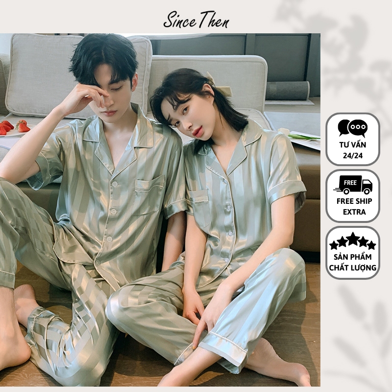 Đồ ngủ pijama đôi nam nữ mặc nhà lụa cao cấp xanh bơ, hàng có sẵn- Since Then