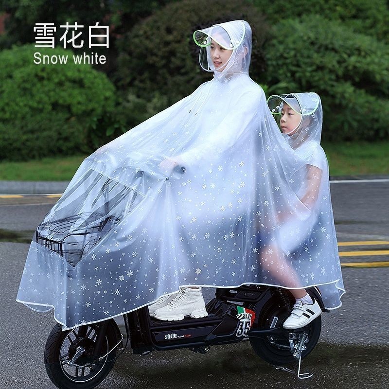 Áo mưa xe máy điện cho hai người, nam và nữ, áo mưa trong suốt thời trang chống nước cho cha mẹ và con cái cho xe điện