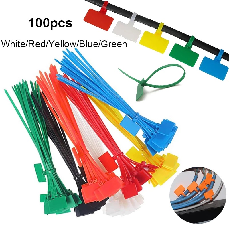 100 Chiếc Dây Buộc Zip Tự Khóa Có Thể Điều Chỉnh - Bút Đánh Dấu Dây Nhựa - Dụng Cụ Tổ Chức Dây Thẻ Cáp - Dụng Cụ Cố Định Vòng Buộc Chống Trơn Trượt - Nhãn Thẻ Dây Buộc Cáp Có Thể Đánh Dấu Bằng Nylon DIY