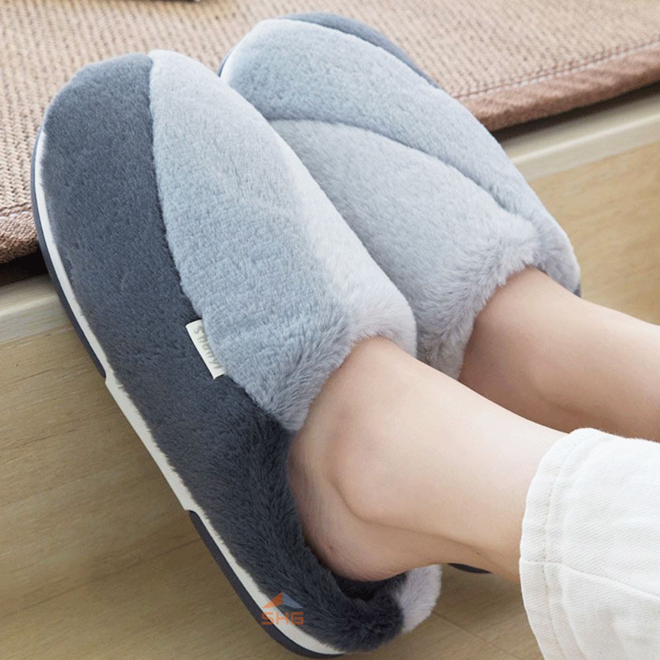 Dép bông đi trong nhà mùa đông, dép lông unisex đế cao su bám sàn tốt, mềm dẻo quai phối 3 màu sang trọng TDO