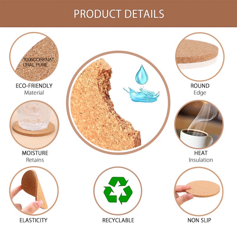 Bộ Coaster Nút Chai Tròn - Thảm Uống Chống Trơn Trượt Chịu Nhiệt Cho Cốc Trà Cà Phê, Trang Trí Bàn Gỗ