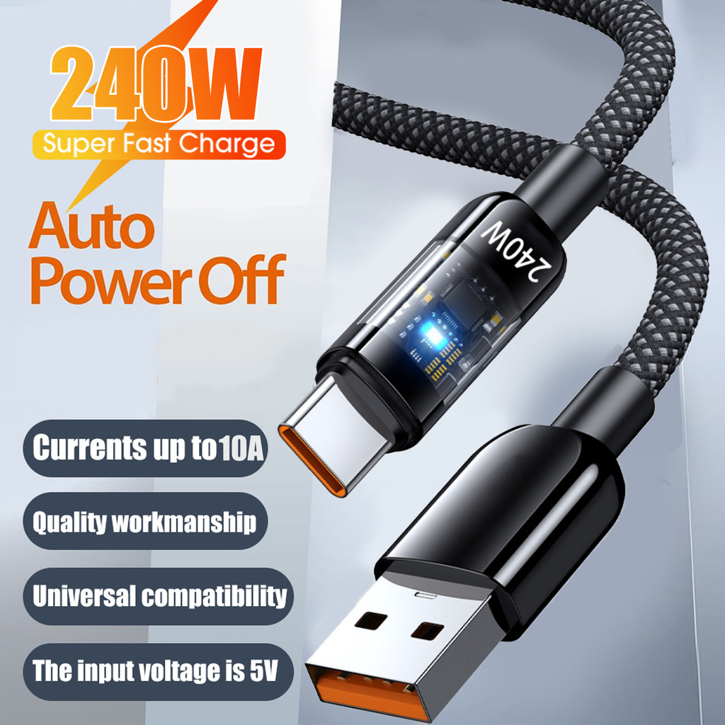 Cáp Type-C 240W tốc độ cực cao - Nylon bện, PD 3.1 Tương thích với máy tính xách tay / máy tính bảng / thiết bị chơi game