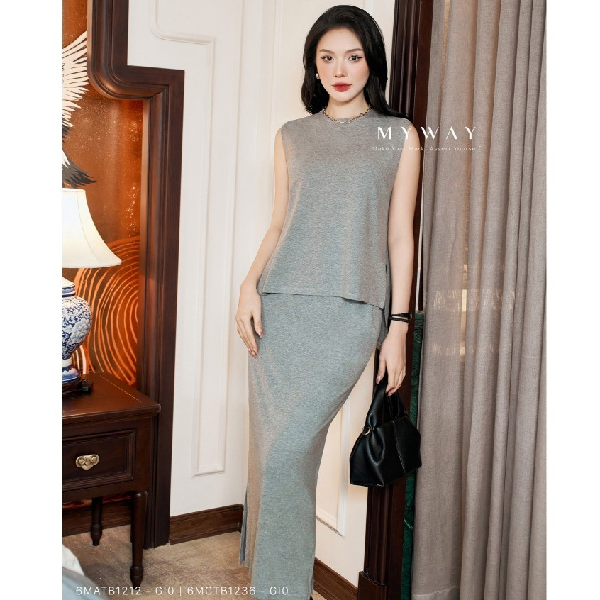 Sét Áo Kiểu Chân Váy Ôm Nữ MY WAY Cotton Sát Nách Xẻ Tà Sang Trọng 6MATB1212 - 6MCTB1236 - GI0