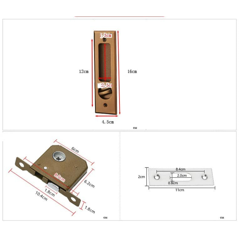 Khóa âm cửa lùa trượt cao cấp nhiều màu 829-2A