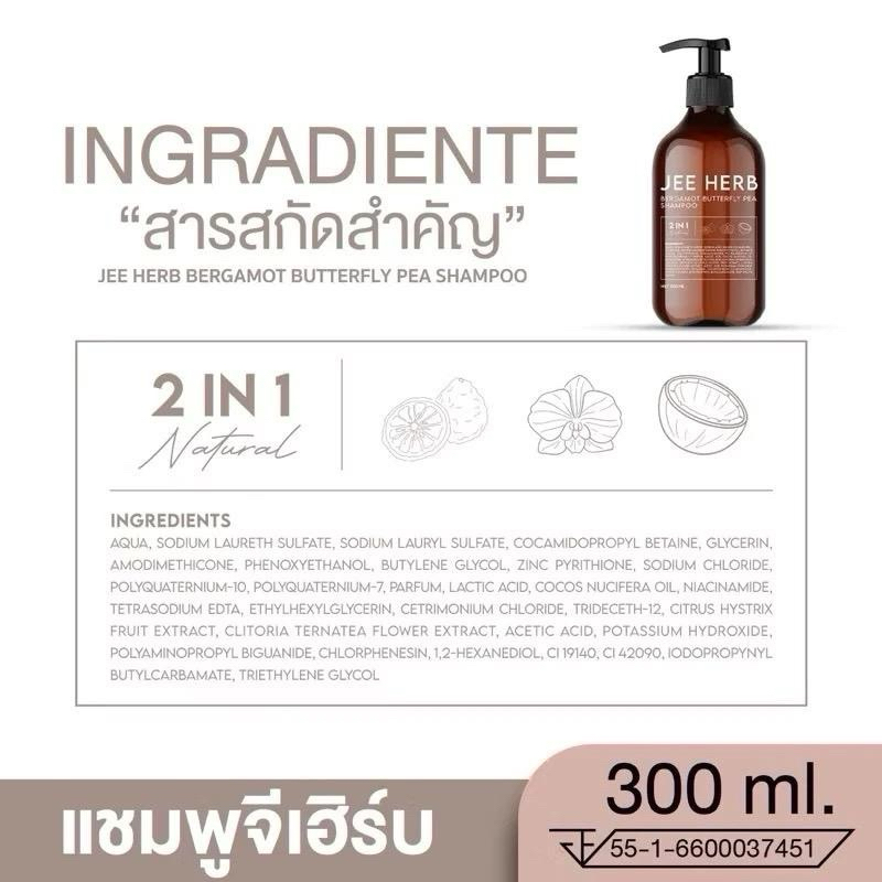 Combo Dầu gội 2in1 Jee Herb (300ml), serum (30ml) hổ trợ chăm sóc tóc giúp hỗ trợ mọc tóc, giảm rụng Jee Herb Thái Lan