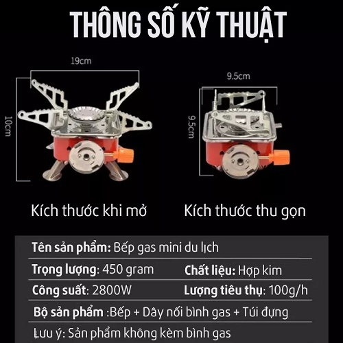 Bếp ga du lịch mini dã ngoại gấp gọn đa năng tiện lợi- TR393 [ LOẠI CÓ DÂY DẪN GA AN TOÀN ]