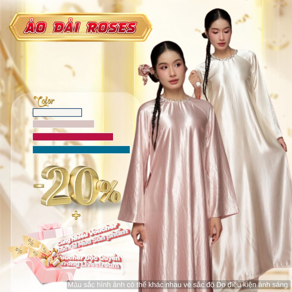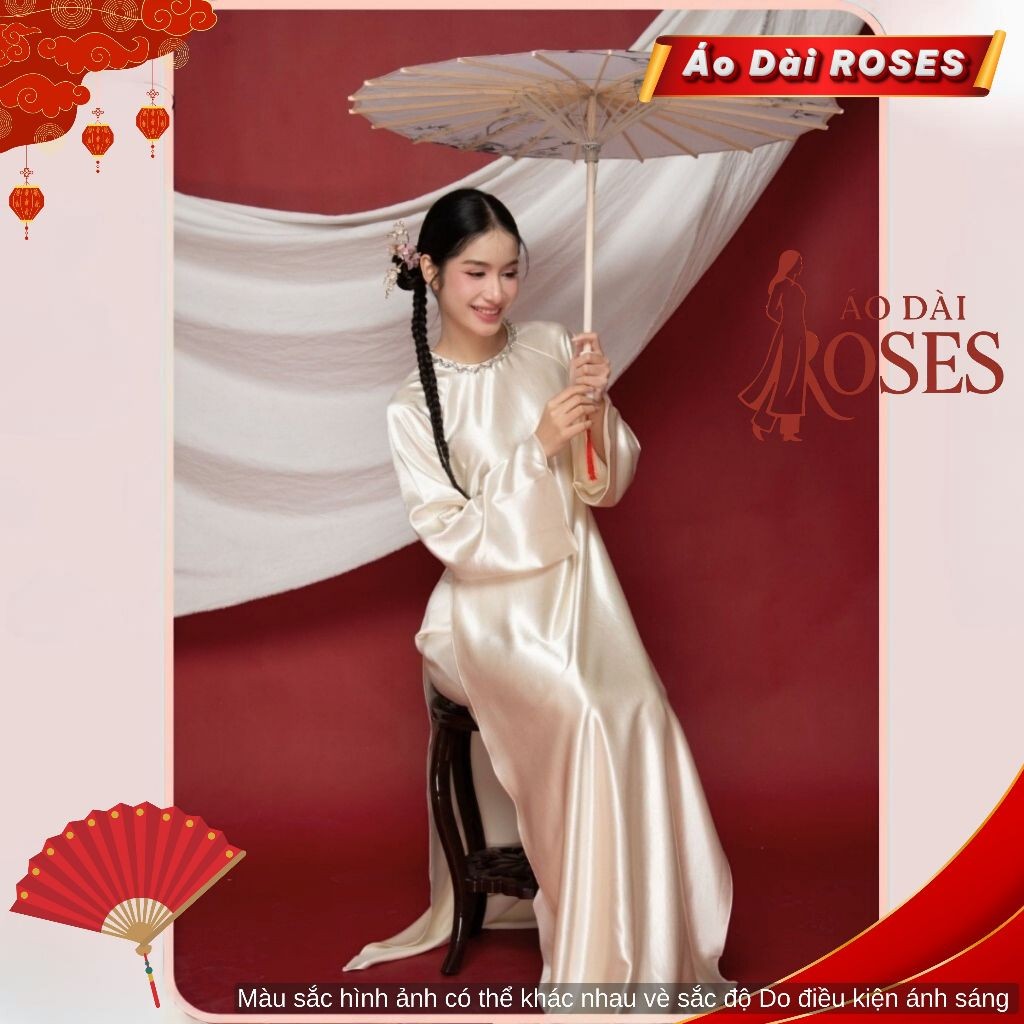 Áo Dài Nữ Dáng Truyền Thống Tay Loe Dài Lụa Satin hay còn gọi là lụa Ý Sang Trọngn- Áo Dài ROSES