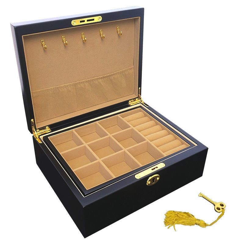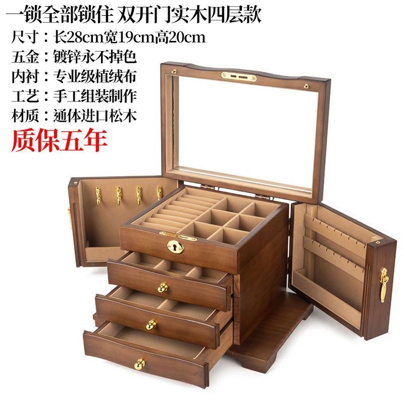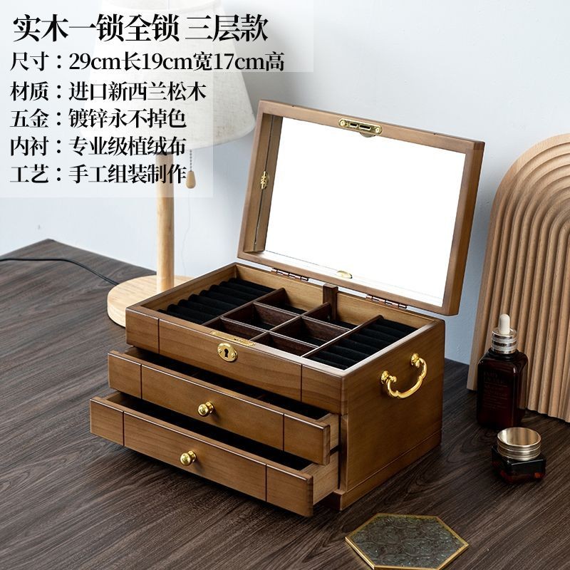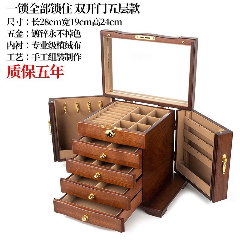 Hộp trang sức bằng gỗ nguyên khối nhiều lớp có khóa, phụ kiện cao cấp cho người nổi tiếng trên internet, phụ kiện tóc, b