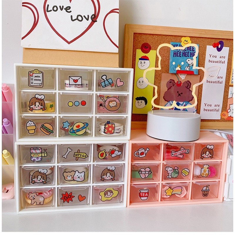 Tủ để bàn mini 9 ngăn phong cách hàn quốc