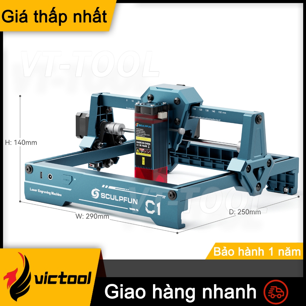 Máy Khắc Laser Cầm Tay Sculpfun C1 3W,Nhỏ Gọn Nhất, Khắc Chi Tiết 0.04mm,Diện Tích Khắc 150x130mm,Cho Người Mới Bắt Đầu