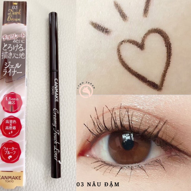 [15 MÀU] Chì kẻ mắt Canmake Creamy Touch Liner lâu trôi chống nước Nhật Bản LYNHJP